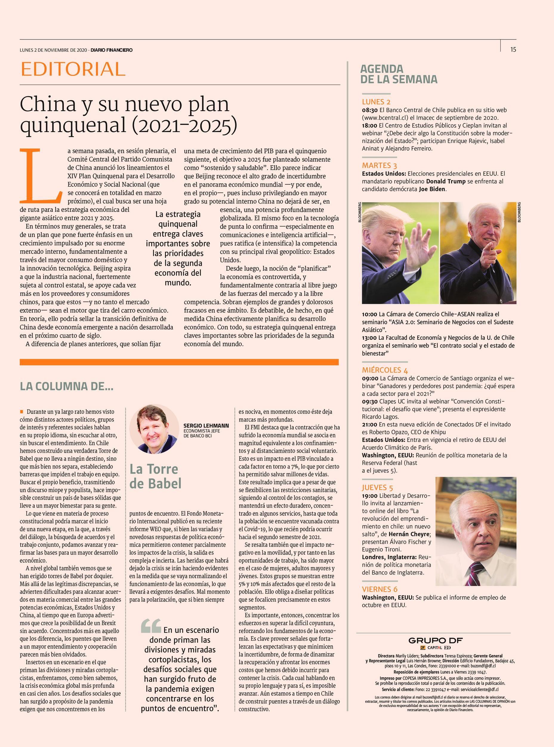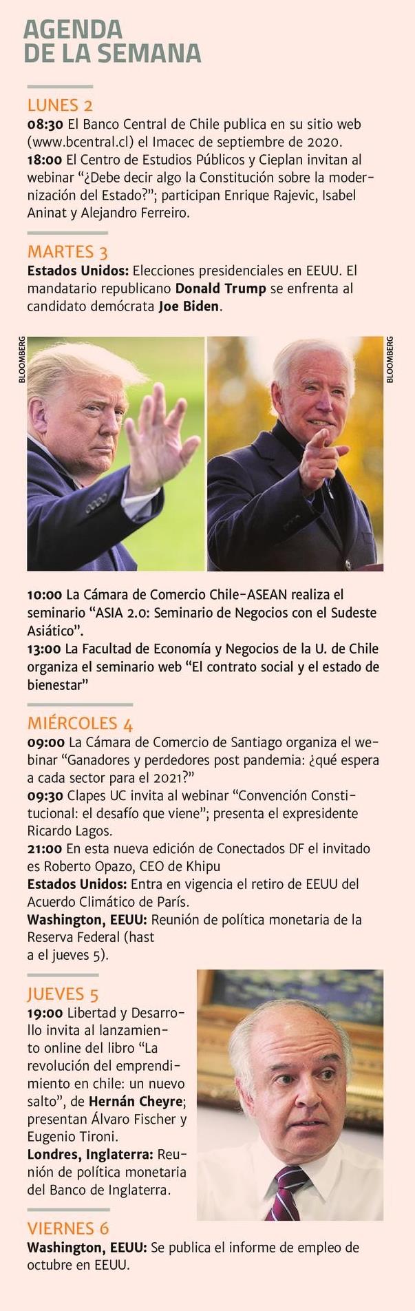 AGENDA DE LA SEMANA 02/11/2020 Diario Financiero AGENDA DE LA SEMANA LUNES 2 08:30 El Banco Central de Chile publica en su sitio web (www.bcentral.cl) el Imacec de septiembre de 2020.18 :00 El Centro de Estudios Públicos y Cieplan ... |