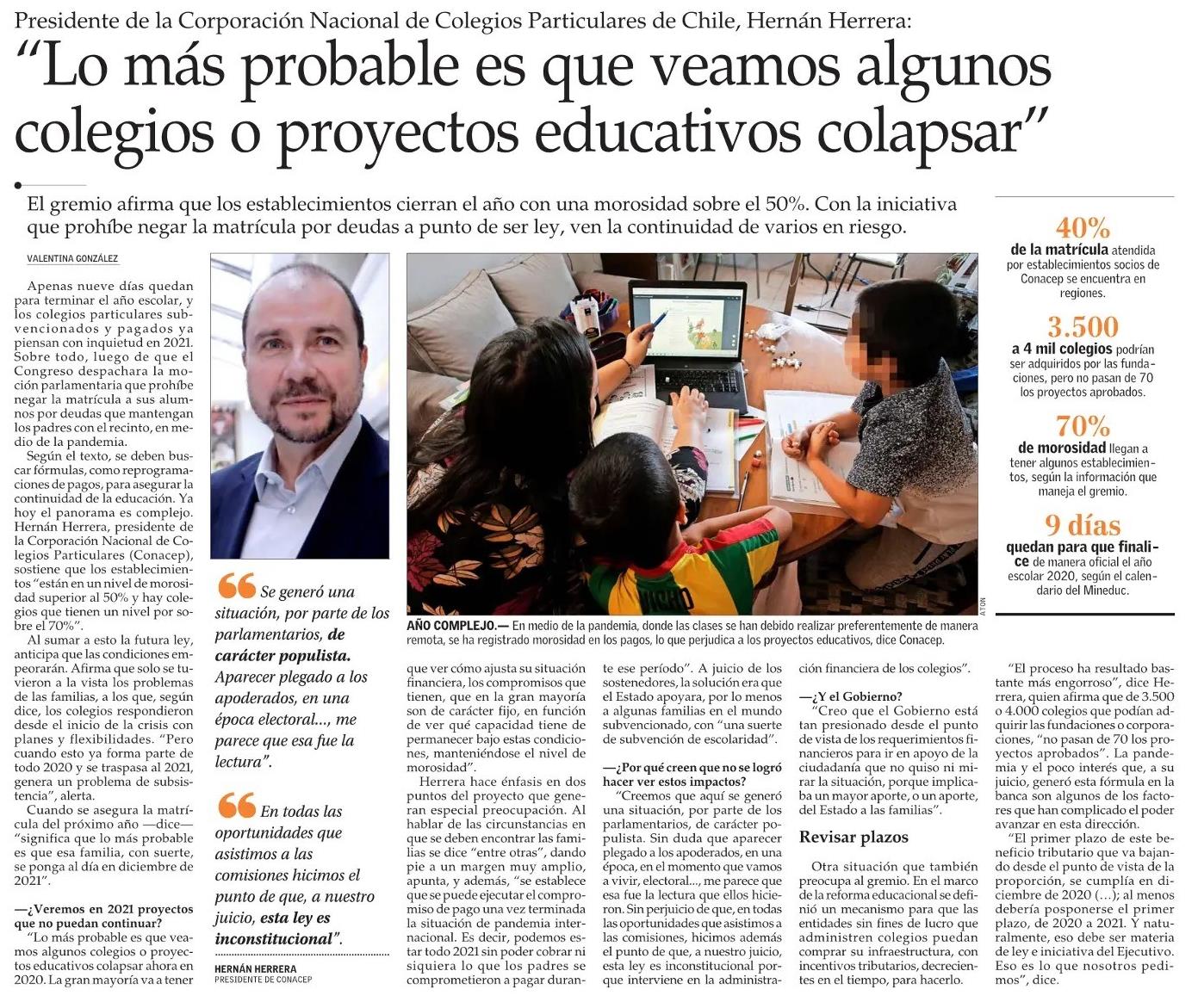 “Lo más probable es que veamos algunos colegios o proyectos educativos colapsar”