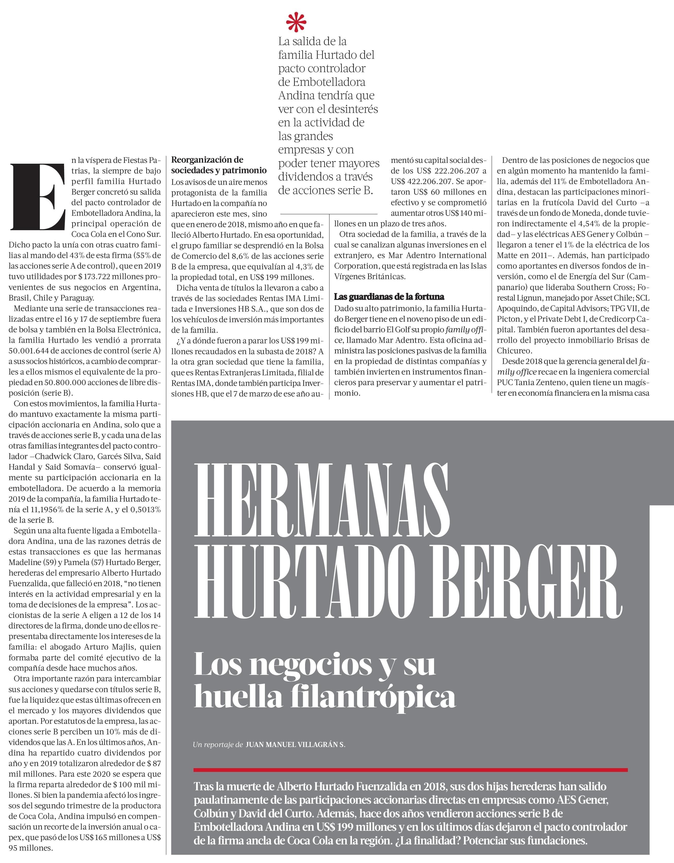 Título: HERMANAS HURTADO BERGER Los negocios y su huella filantrópica