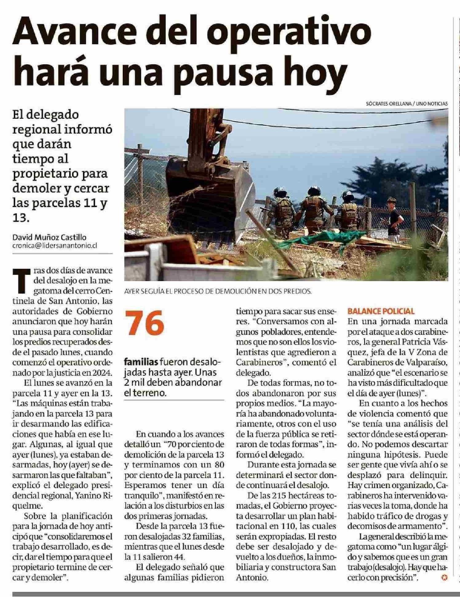 Avance del operativo hará una pausa hoy 14-01-2026 El Líder |