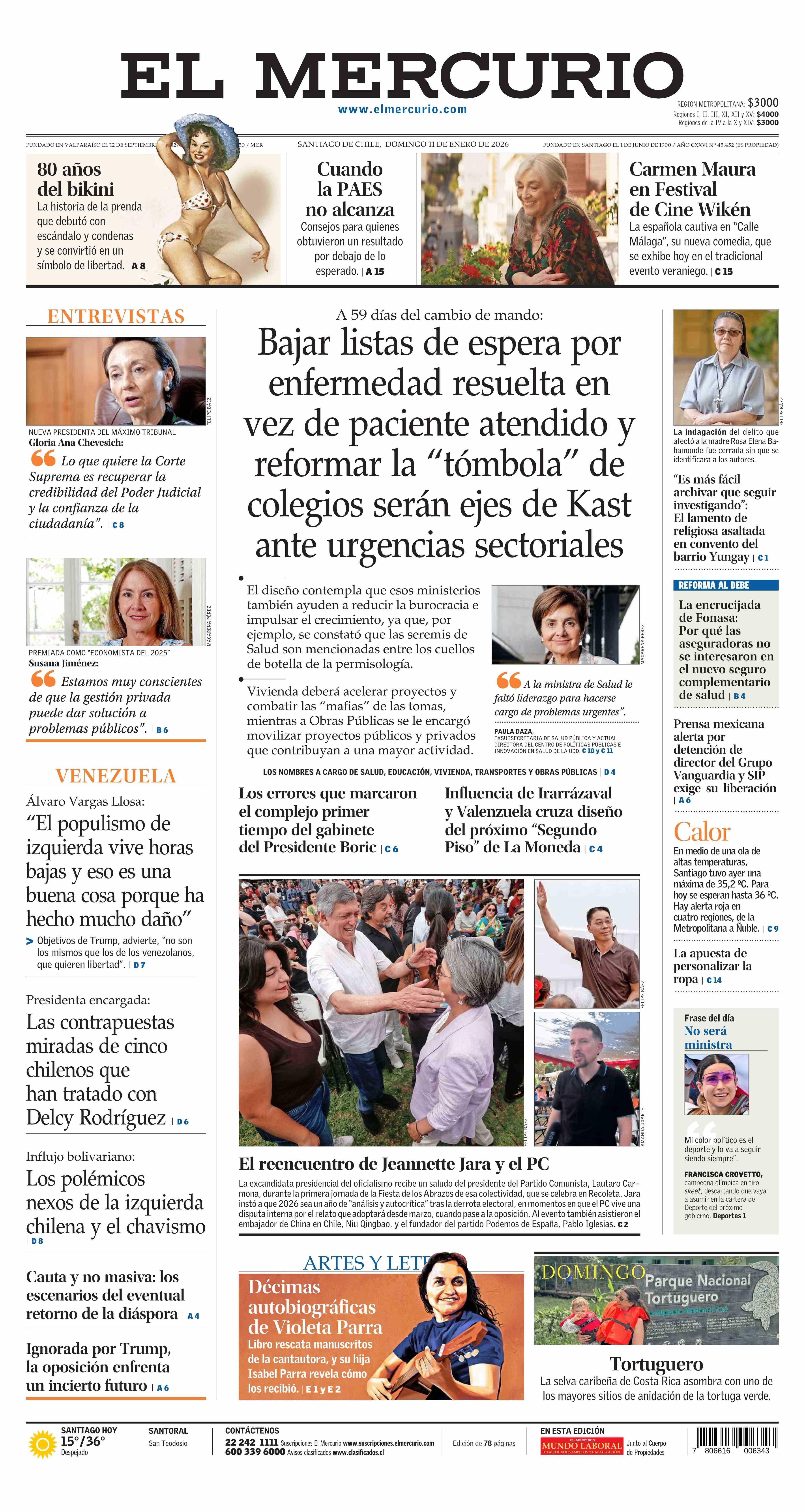 PORTADA EL MERCURIO (A) CHILE 11-01-2026 El Mercurio |