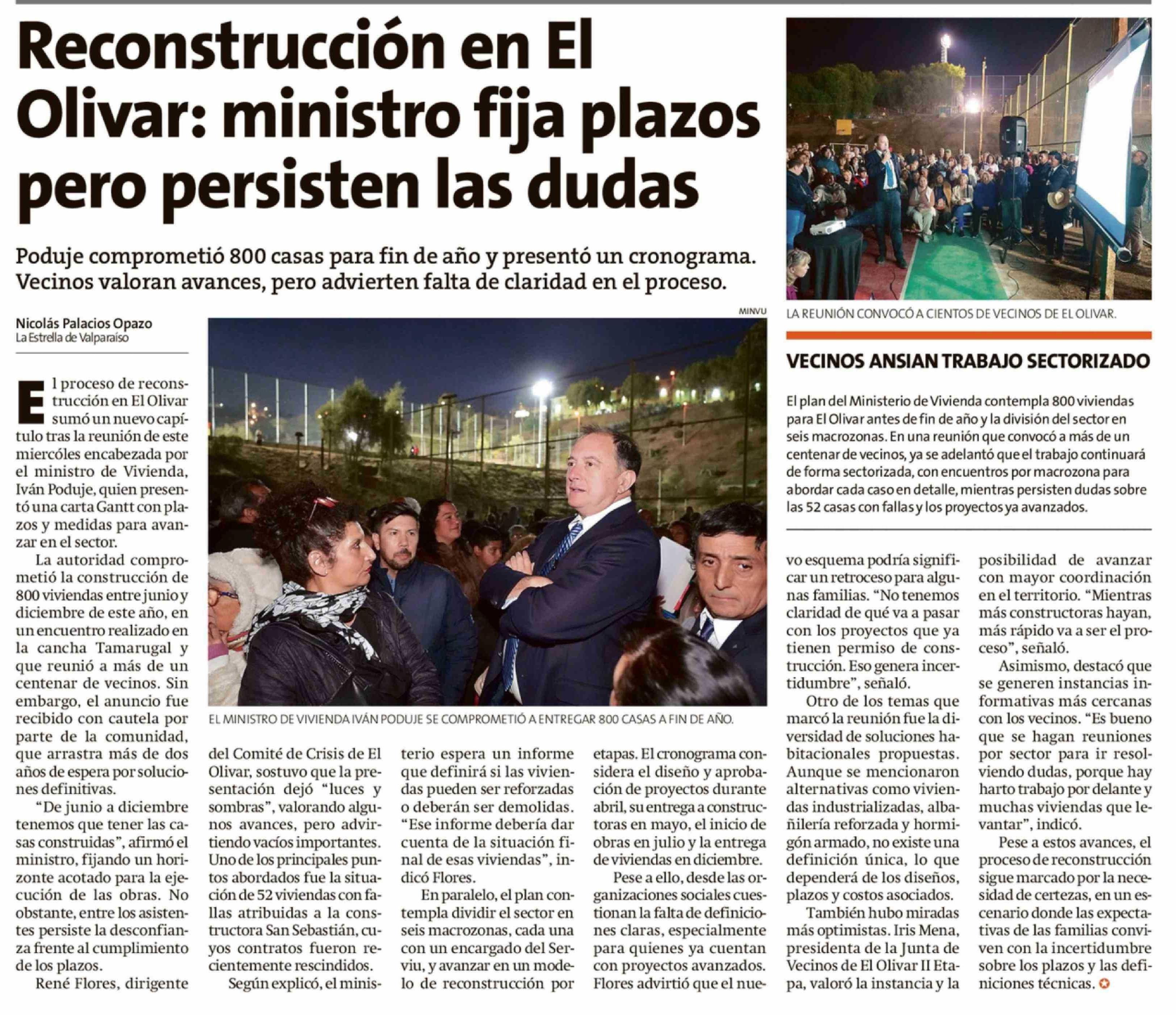 Reconstrucción en El Olivar: ministro fija plazos pero persisten las dudas 10-04-2026 La Estrella de Valparaíso |