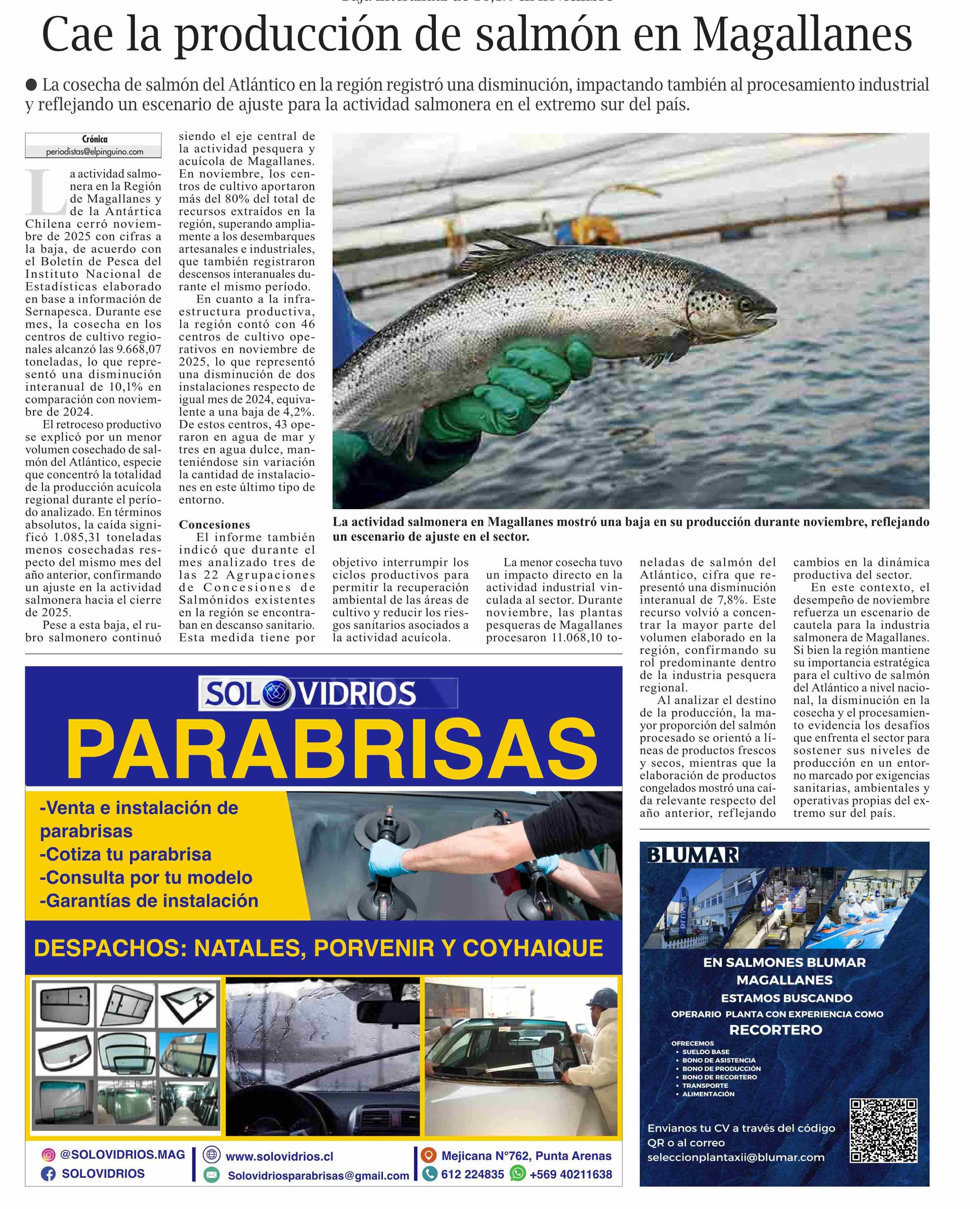 Cae la producción de salmón en Magallanes 28-01-2026 El Pingüino |