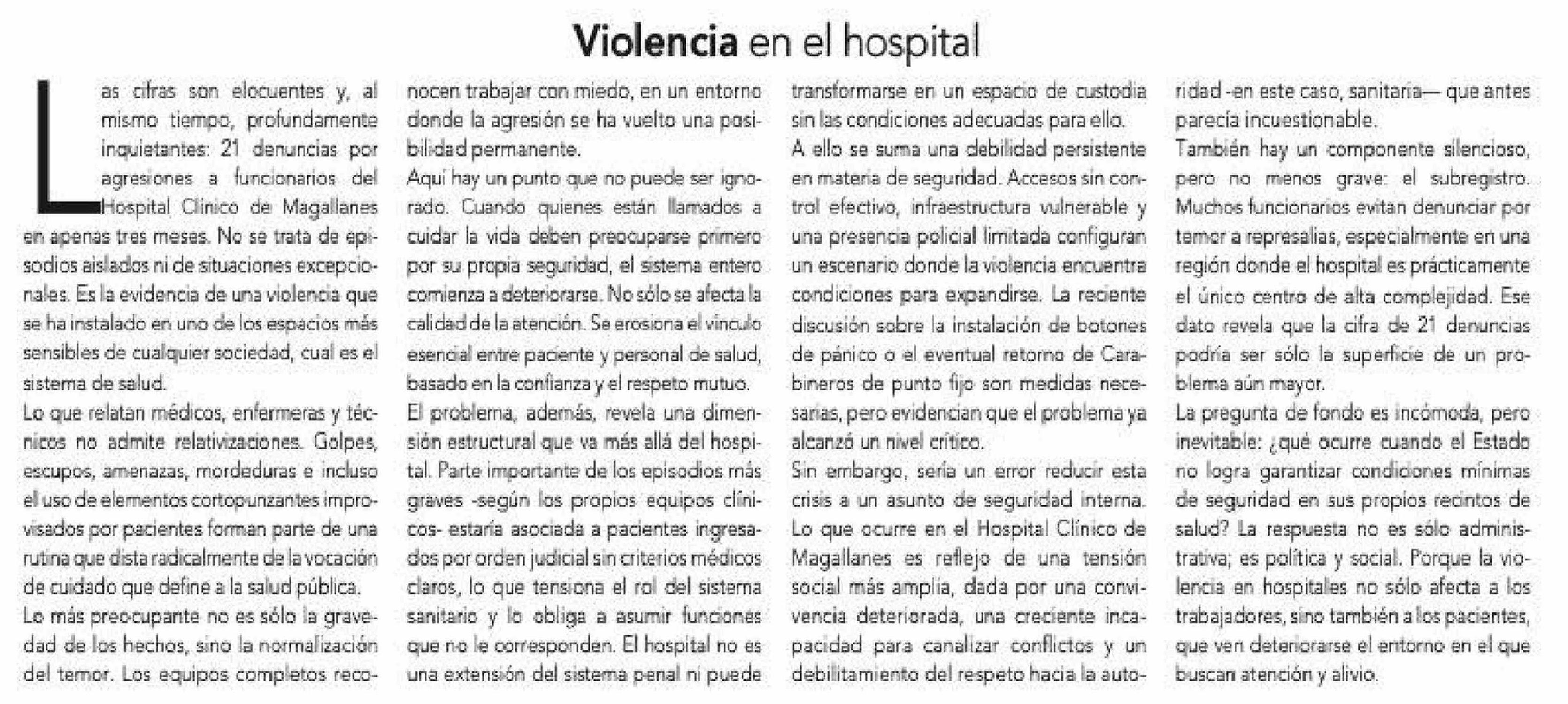 Editorial: Violencia en el hospital 13-04-2026 La Prensa Austral |