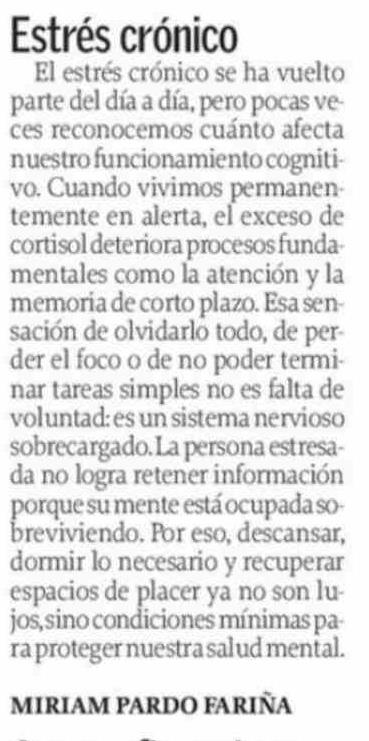 CARTAS: Estrés crónico 26-03-2026 El Sur |