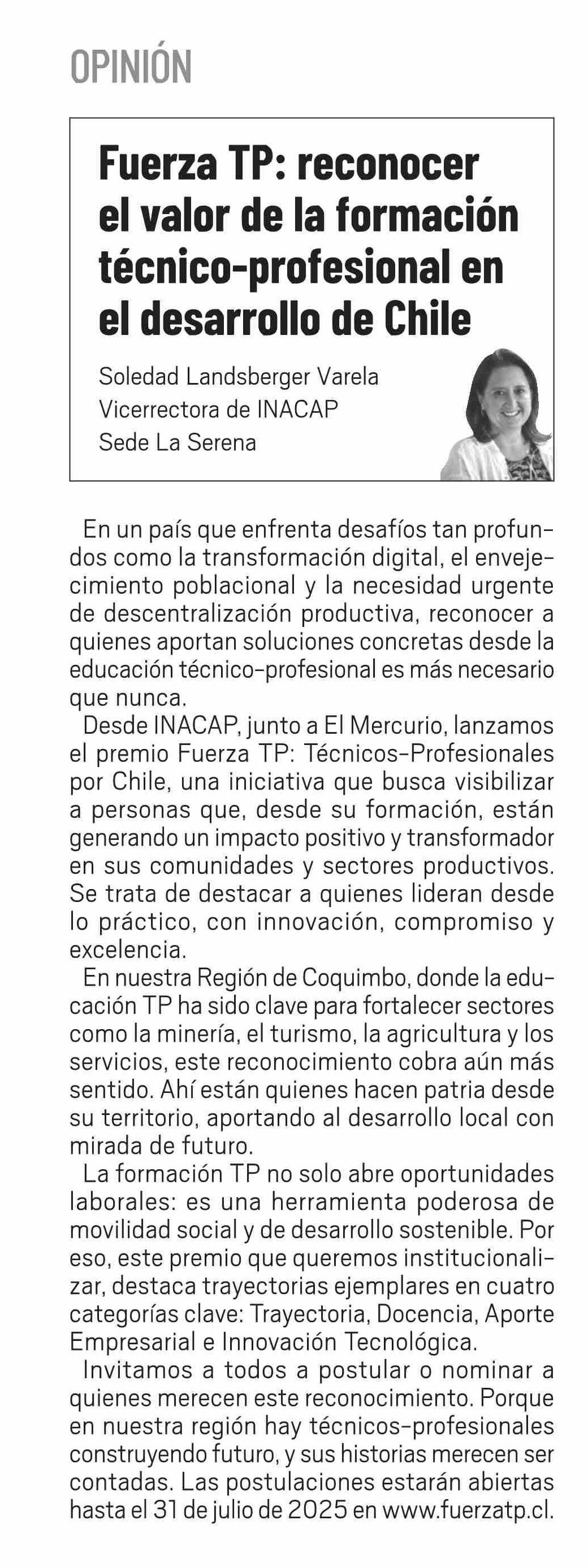 COLUMNAS DE OPINIÓN: reconocer el valor de la formación técnico-profesional en el desarrollo de Chile 19-06-2025 El Día |