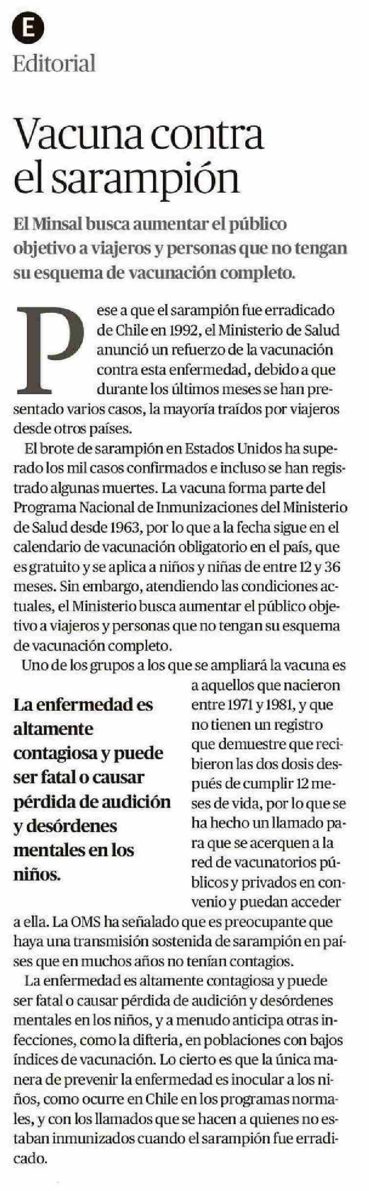 EXTRACTOS: Vacuna contra el sarampión 31-05-2025 El Austral de la Araucanía |
