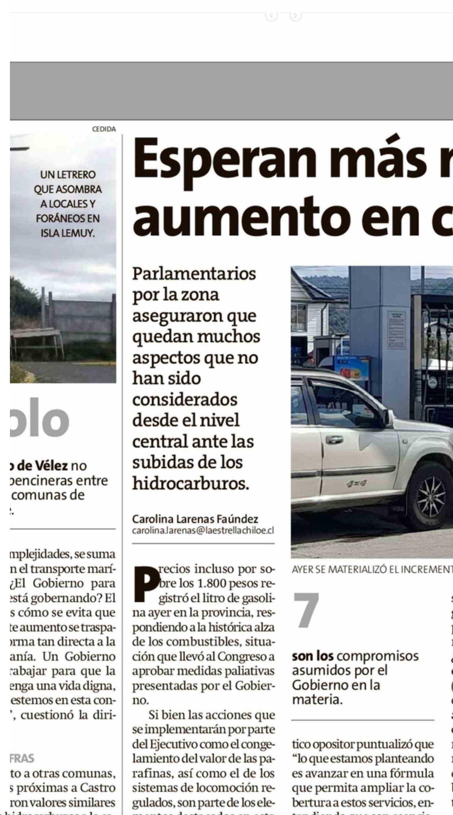 Esperan más medidas por aumento en combustibles 27-03-2026 La Estrella de Chiloé |