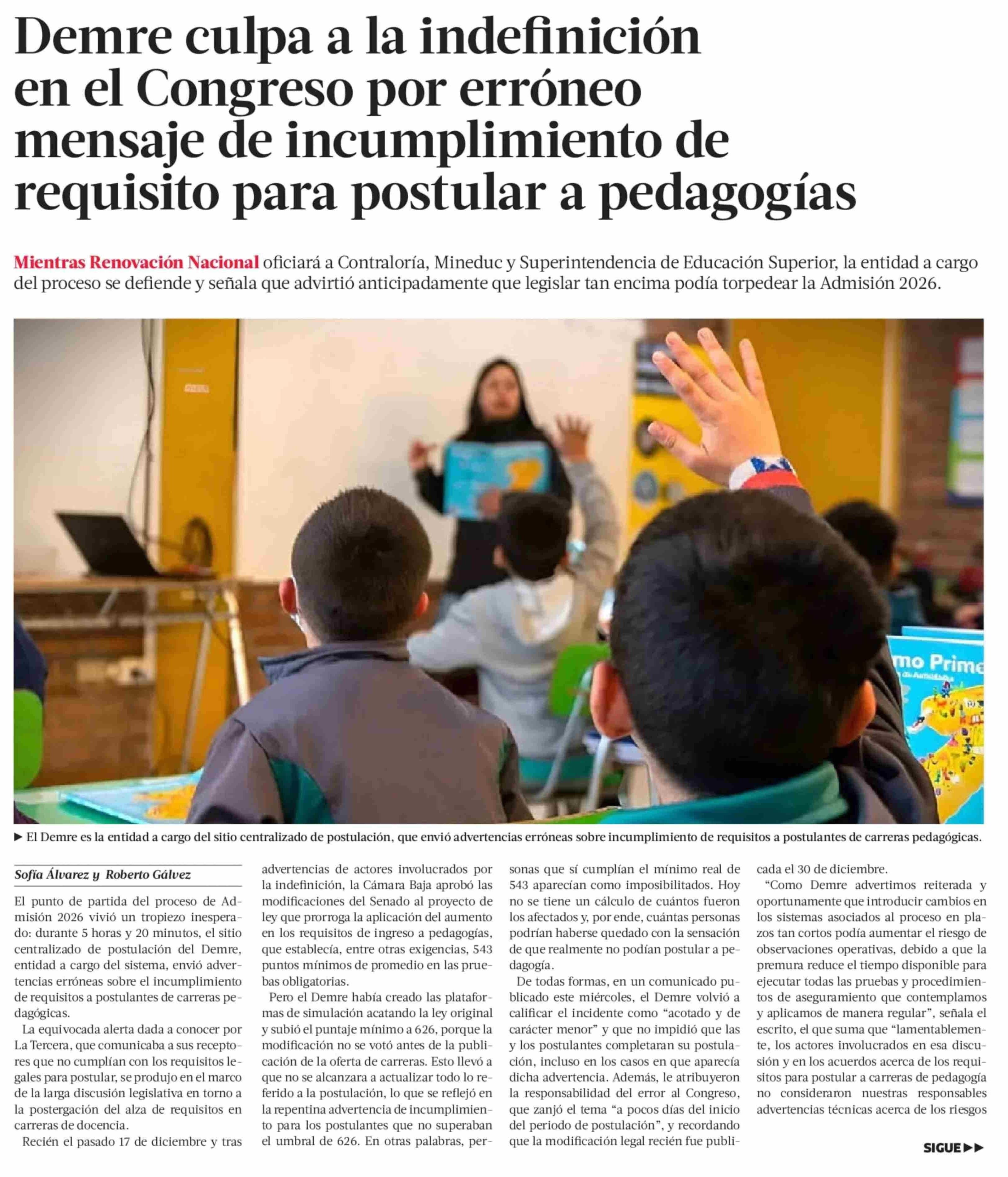 Título: Demre culpa a la indefinición en el Congreso por erróneo mensaje de incumplimiento de requisito para postular a pedagogías