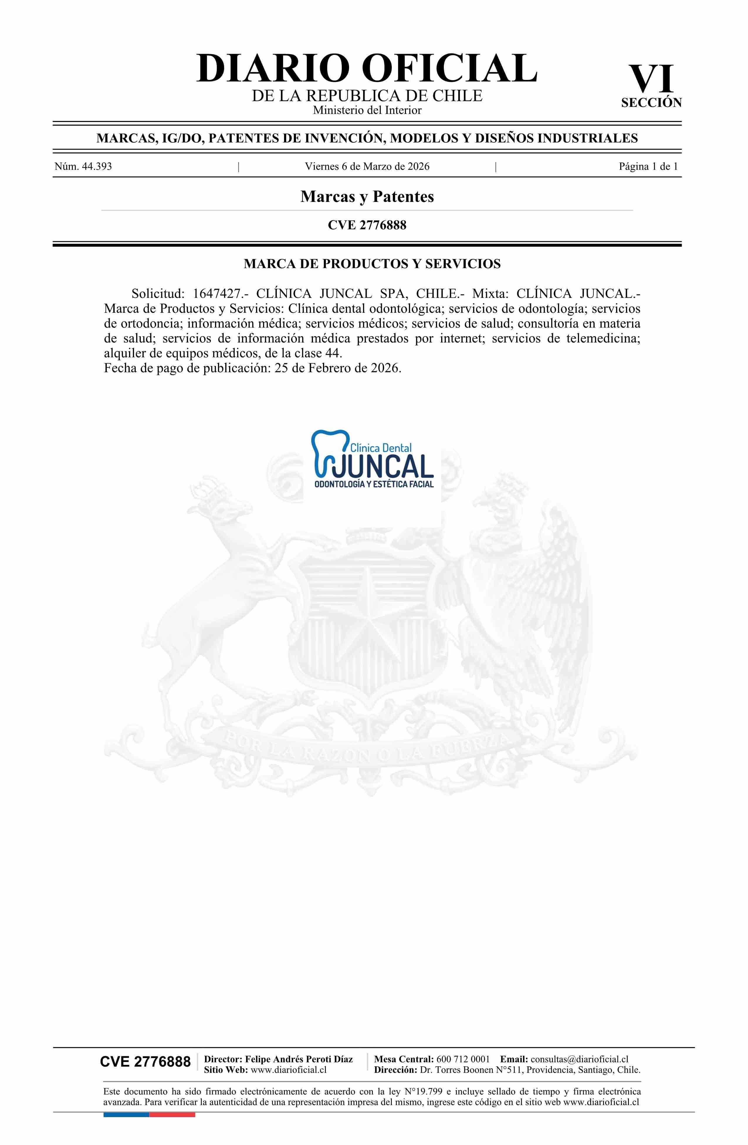 Solicitud número 1647427.- CLÍNICA JUNCAL 06-03-2026 Diario Oficial Edición Electrónica |