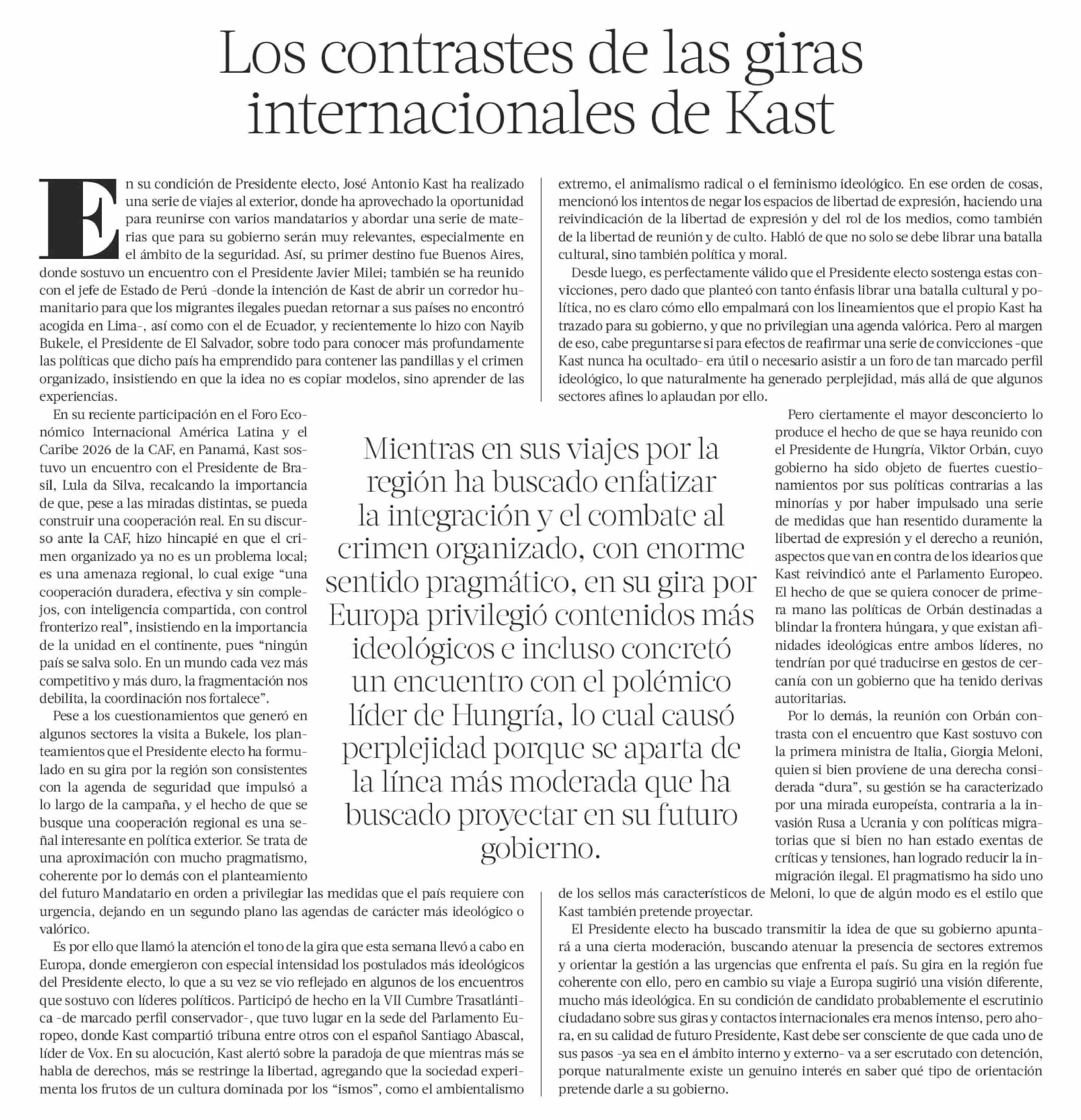 Título: EDITORIAL: Los contrastes de las giras internacionales de Kast