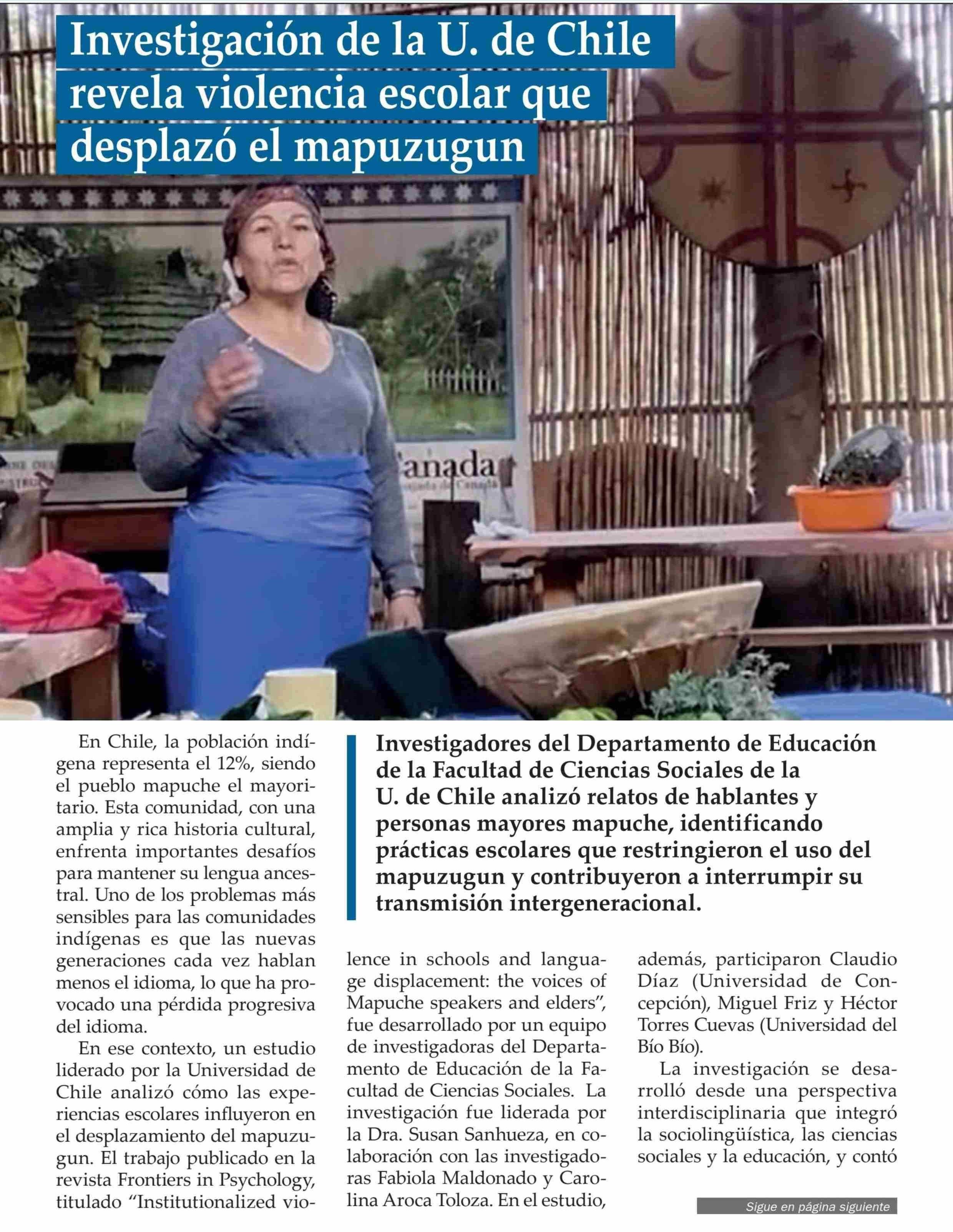 | Título: | Investigación de la U. de Chile revela violencia escolar que desplazó el mapuzugun |
