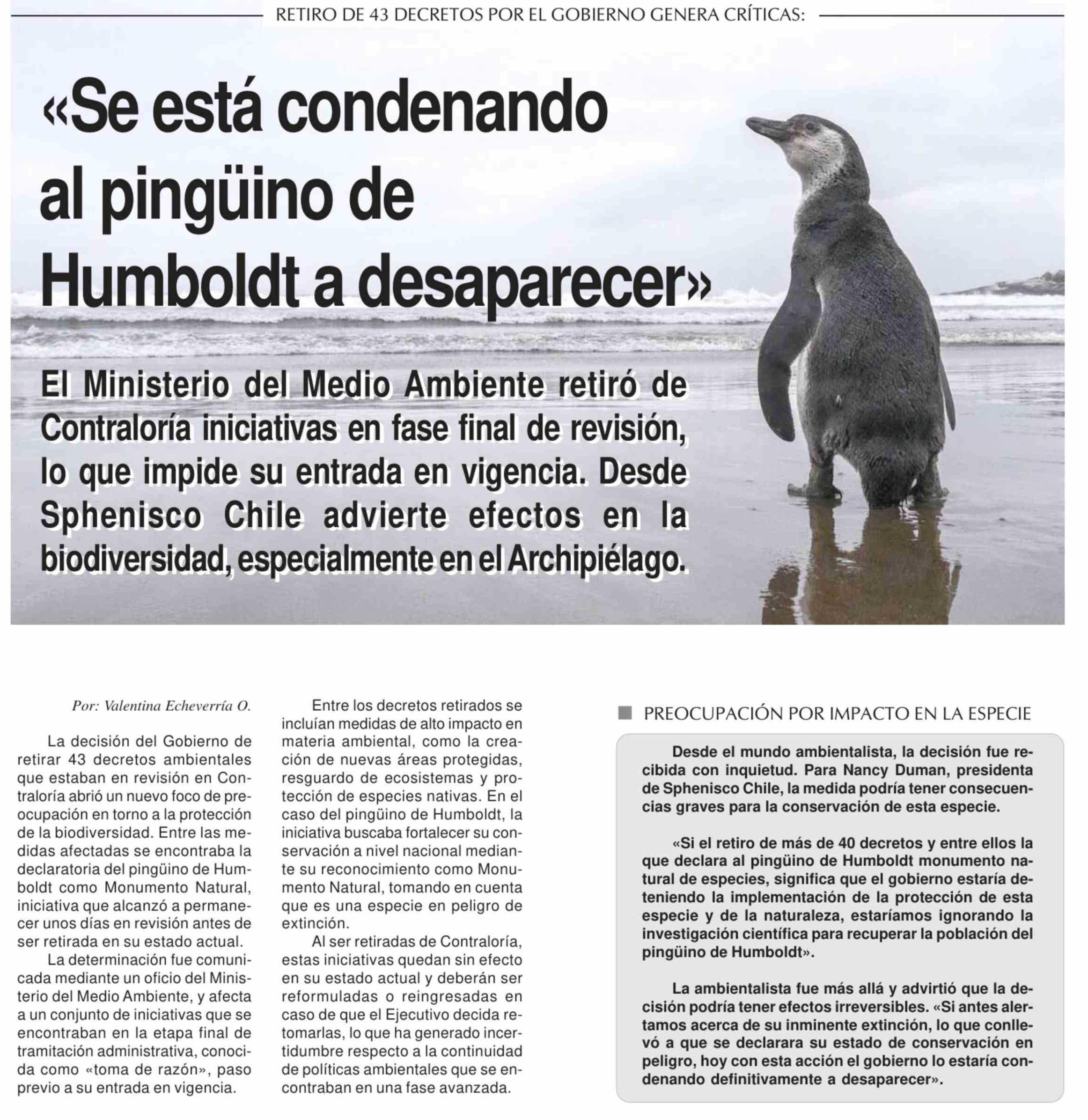 Título: «Se está condenando al pingüino de Humboldt a desaparecer>