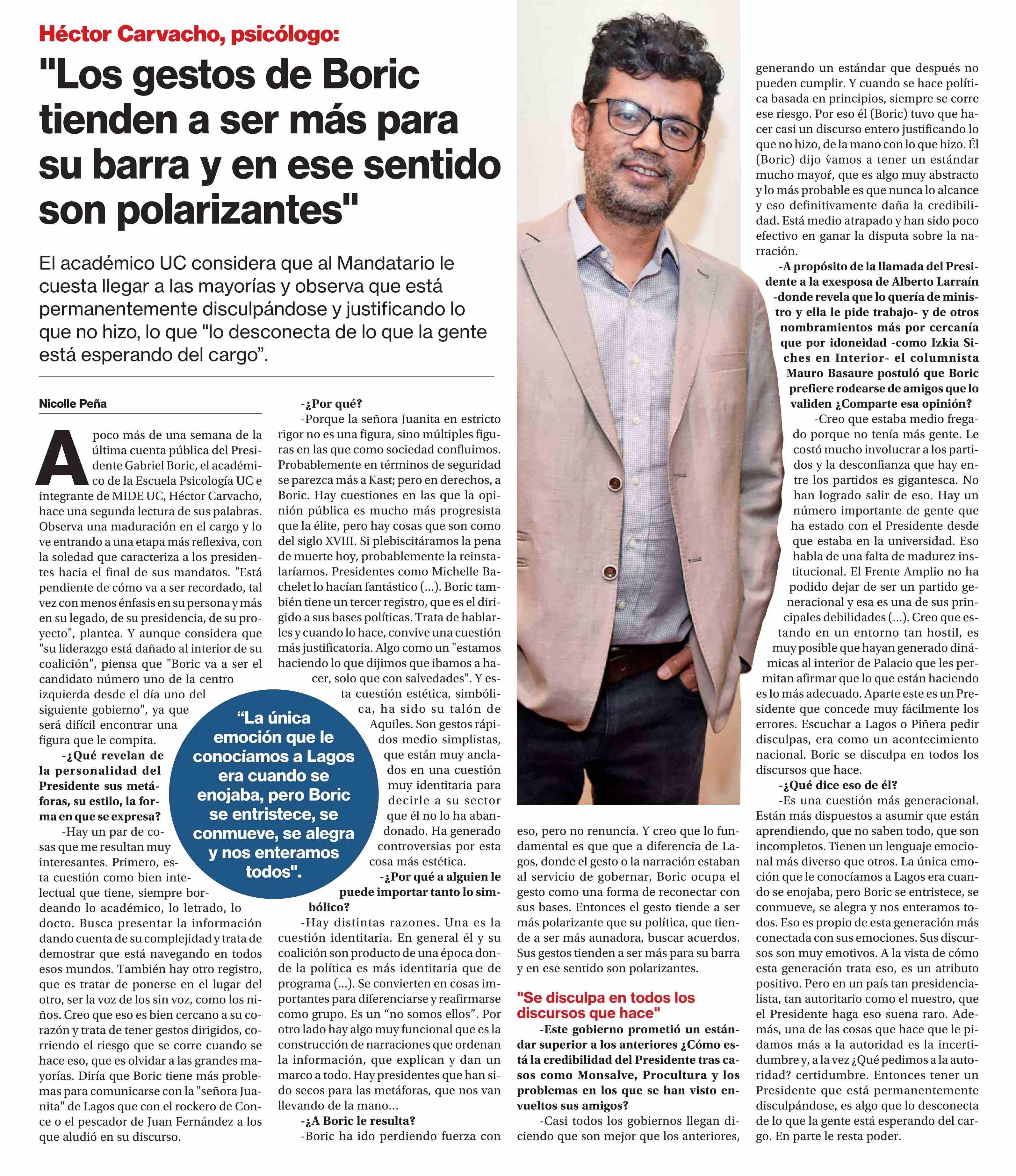 | Título: | "Los gestos de Boric tienden a ser más para su barra y en ese sentido son polarizantes” |