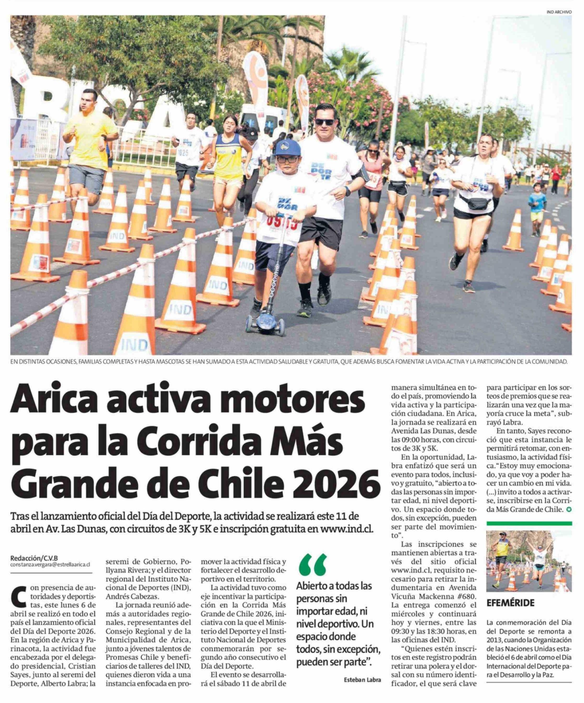 Arica activa motores para la Corrida Más Grande de Chile 2026 09-04-2026 La Estrella de Arica |
