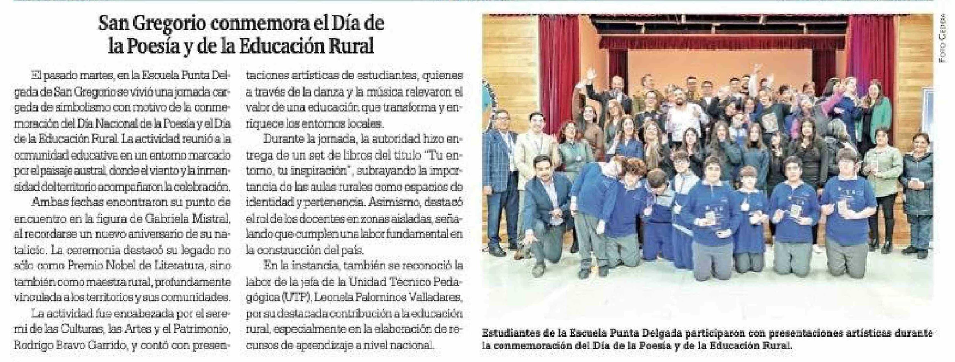 San Gregorio conmemora el Día de la Poesía y de la Educación Rural 10-04-2026 La Prensa Austral |