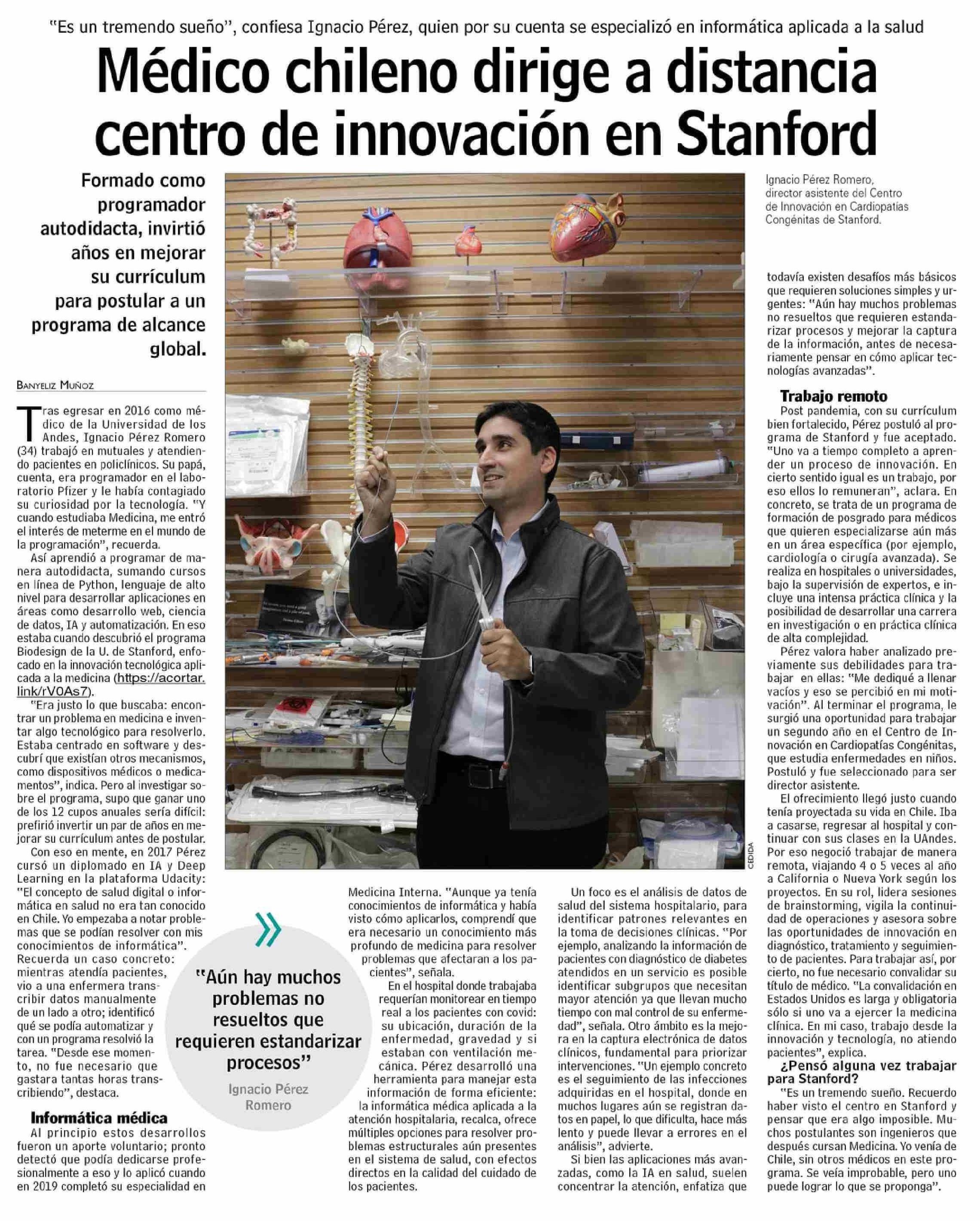 | Título: | Médico chileno dirige a distancia centro de innovación en Stanford |
