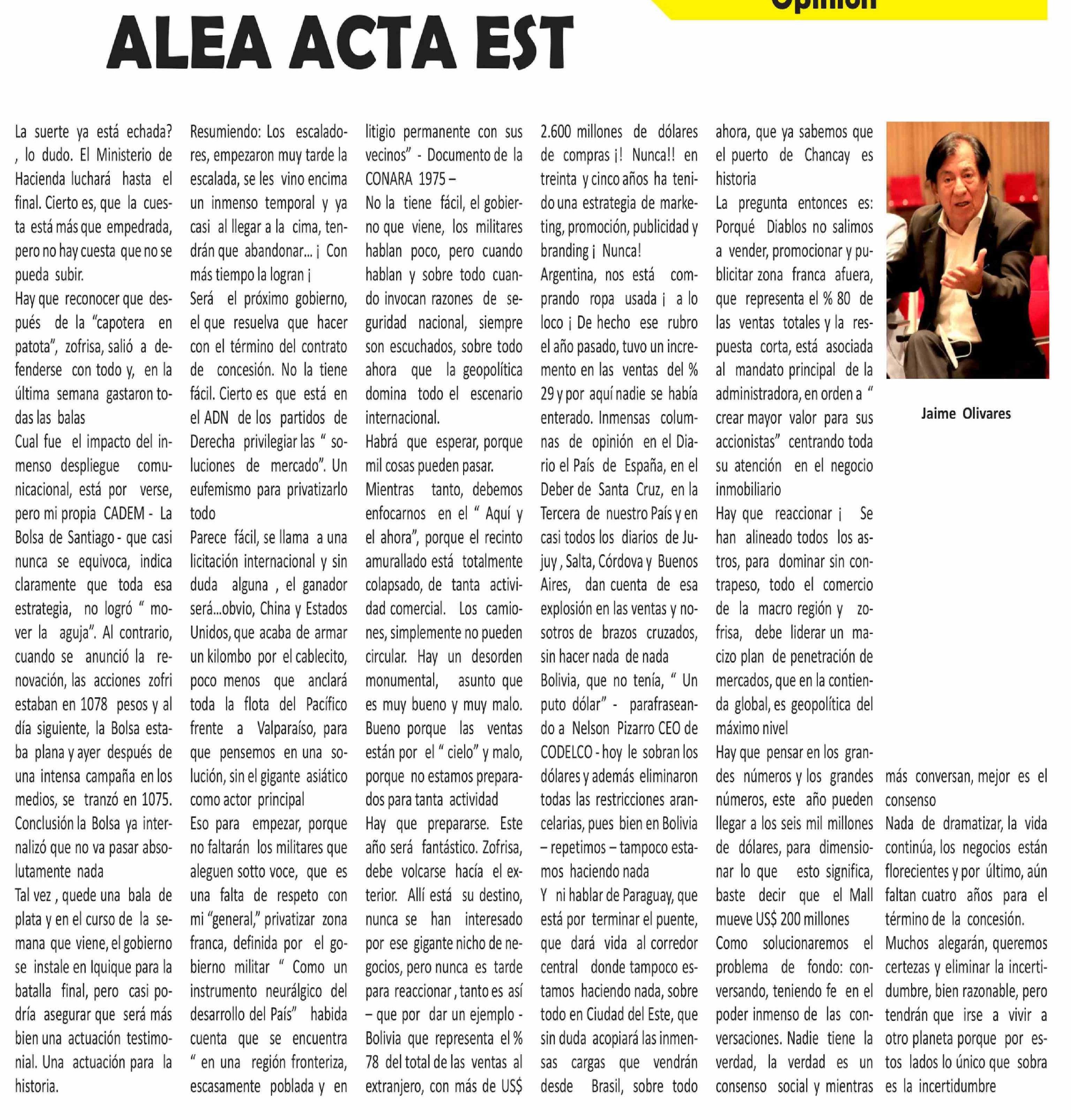 Columnas de Opinión: ALEA ACTA EST