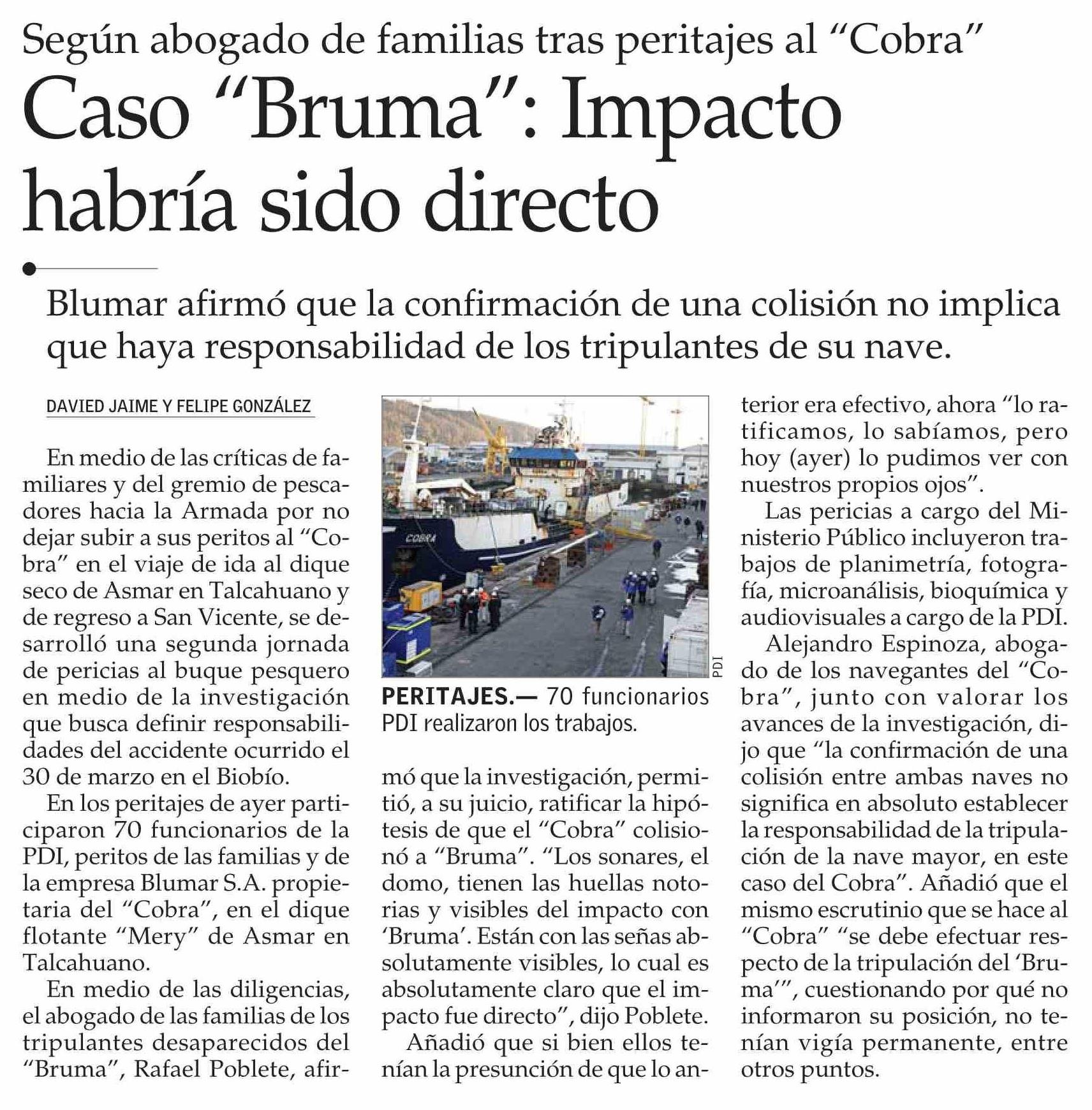 Caso “Bruma”: Impacto habría sido directo 04-05-2025 El Mercurio |