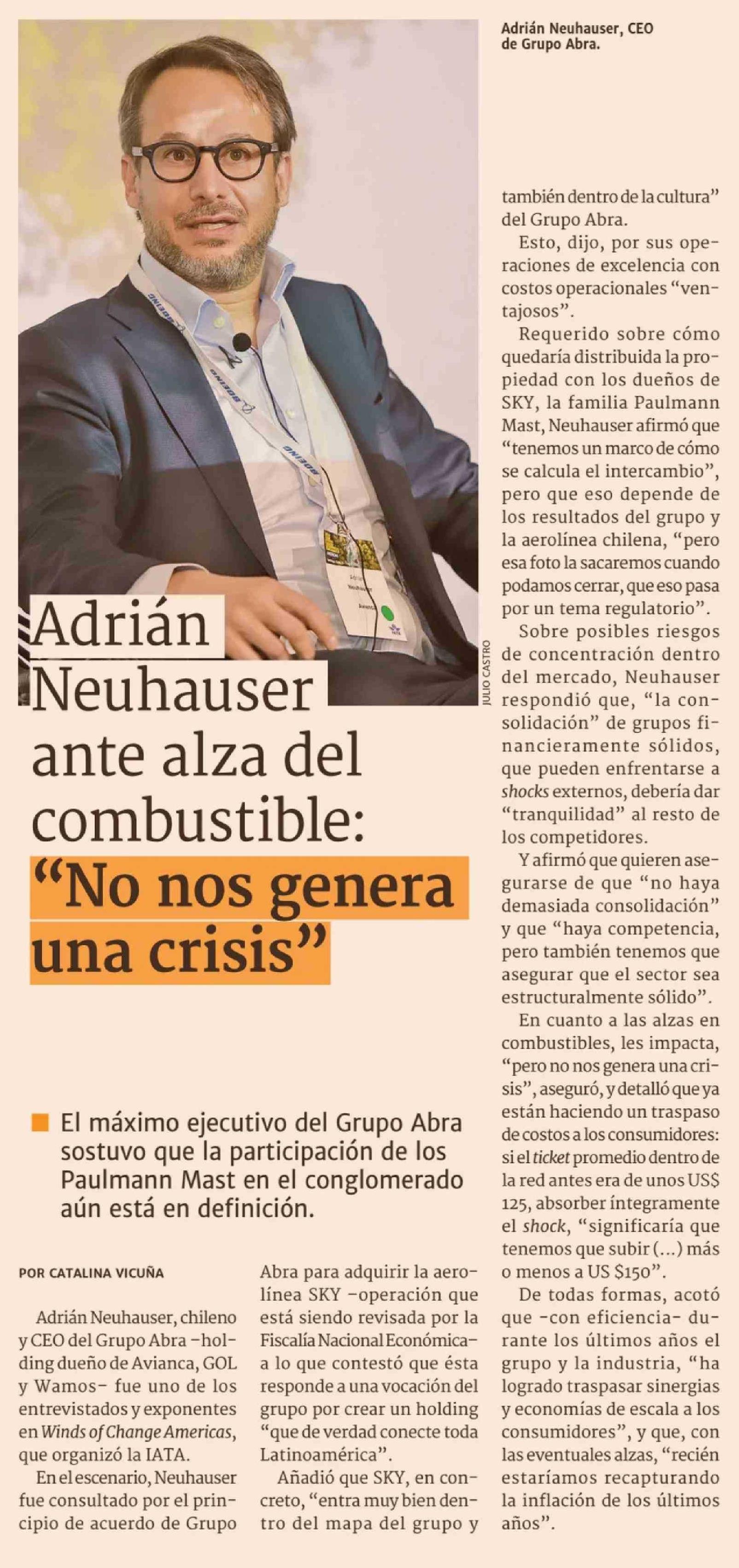 Adrián Neuhauser ante alza del combustible: "No nos genera una crisis" 09-04-2026 Diario Financiero |