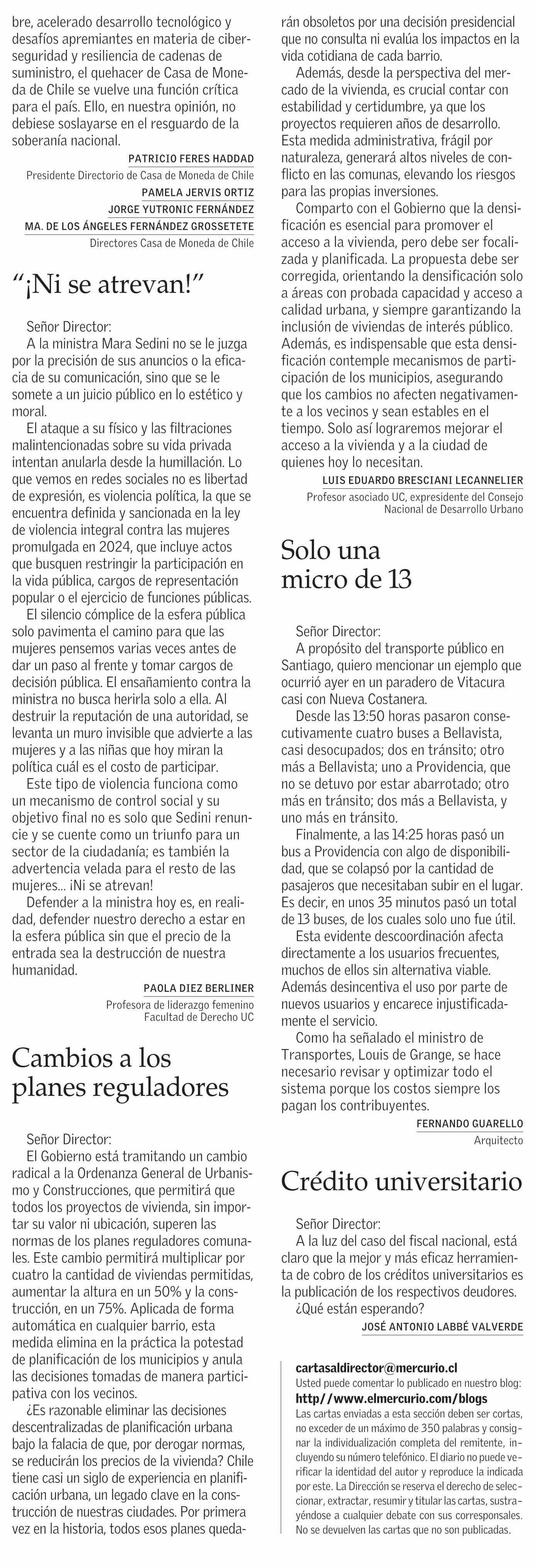 Título: Cartas: Cambios a los planes reguladores