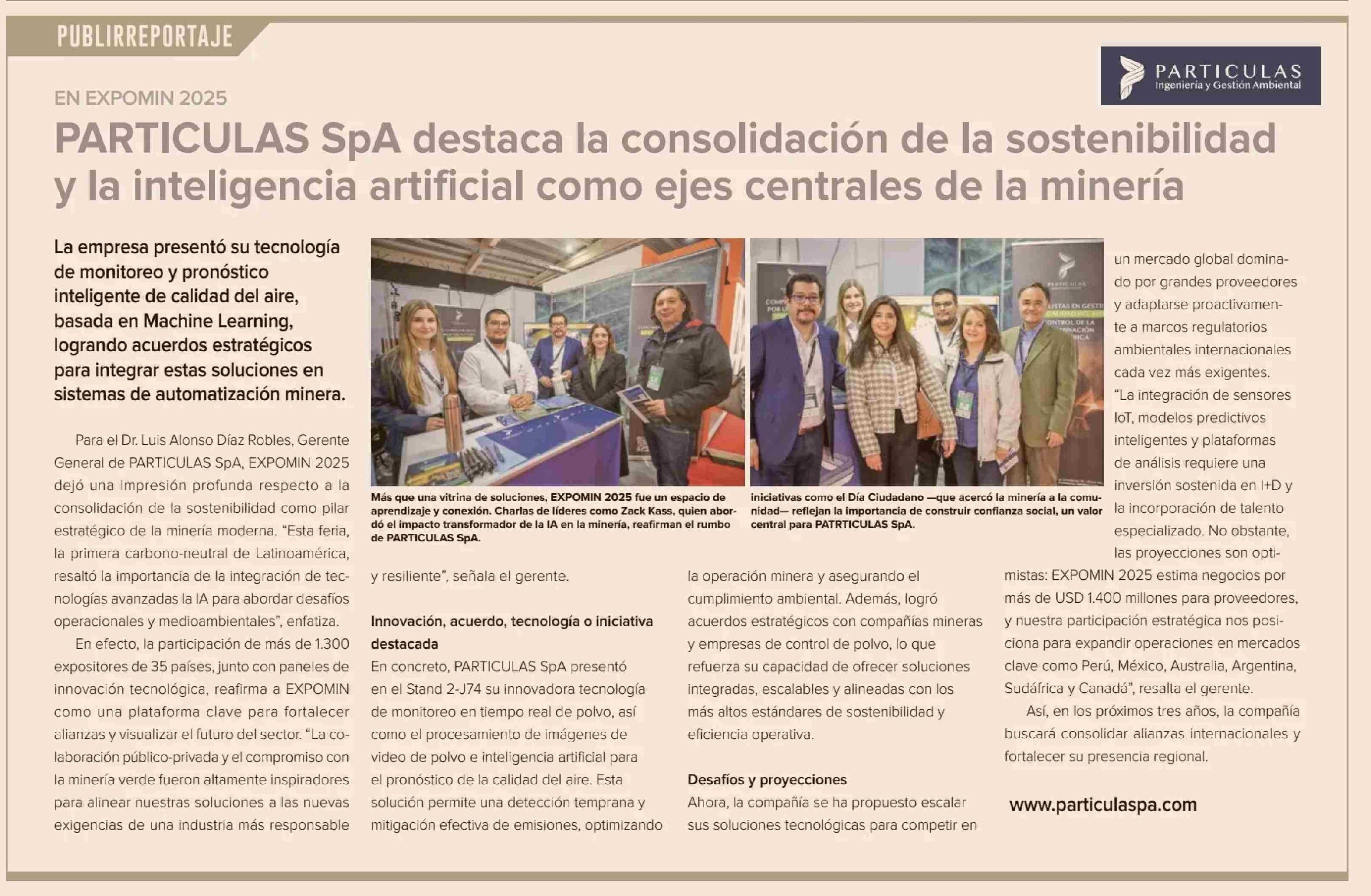 PARTICULAS SpA destaca la consolidación de la sostenibilidad y la inteligencia artificial como ejes centrales de la minería 09-05-2025 Diario Financiero |