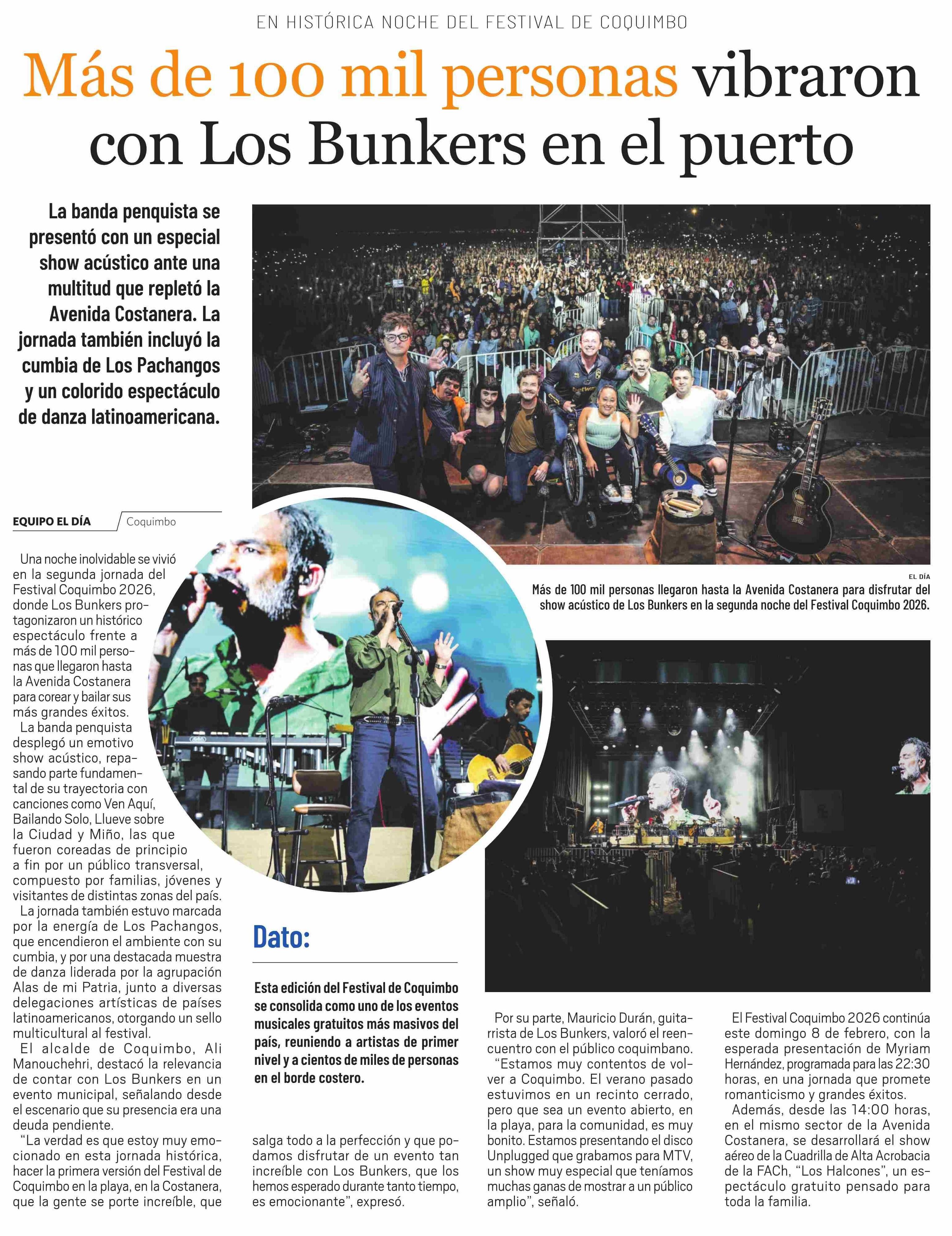 Más de 100 mil personas vibraron con Los Bunkers en el puerto 08-02-2026 El Día |