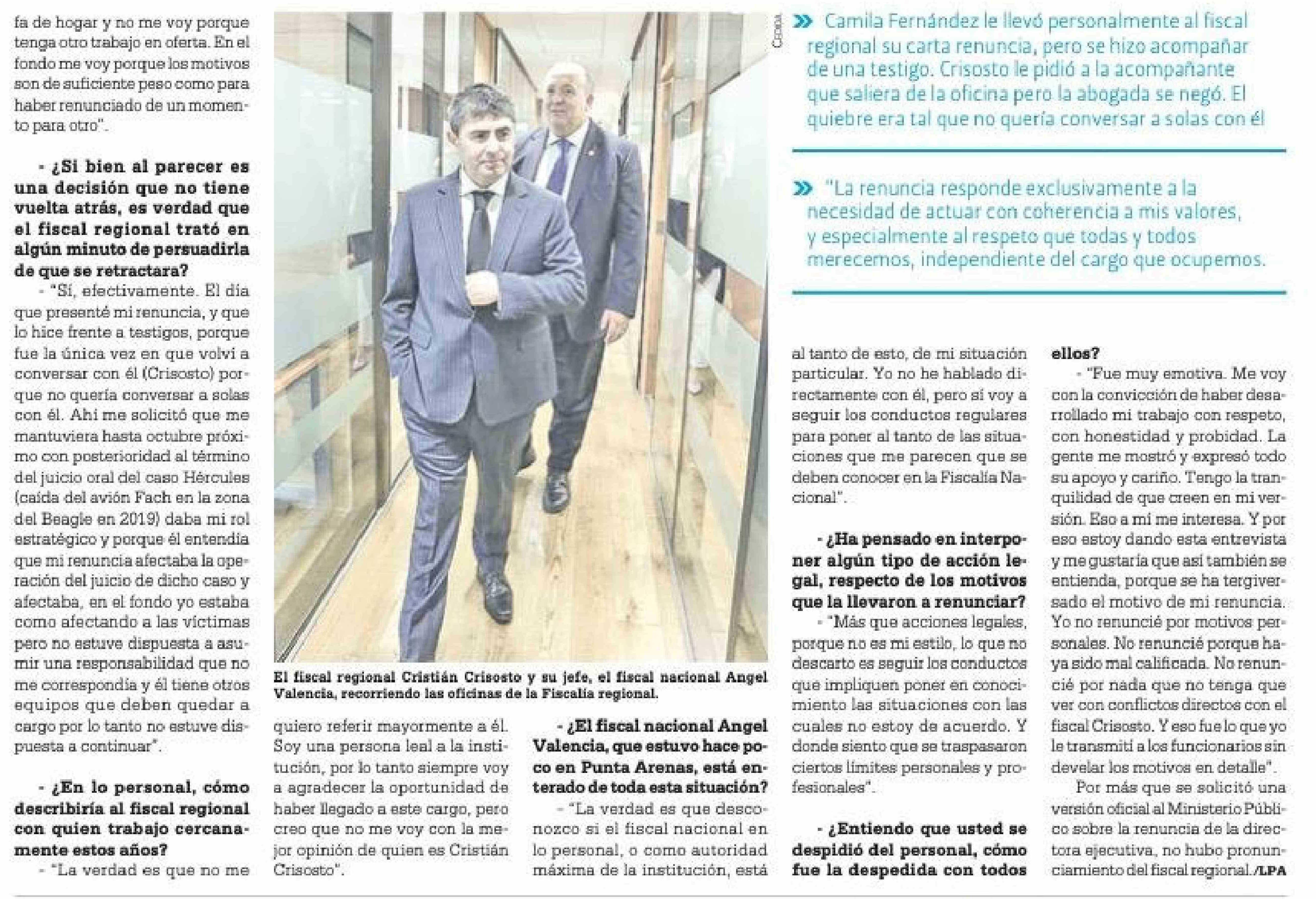 | Título: | Exdirectora ejecutiva de la Fiscalía regional: "No me voy con la mejor opinión de quien es Cristián Crisosto" |