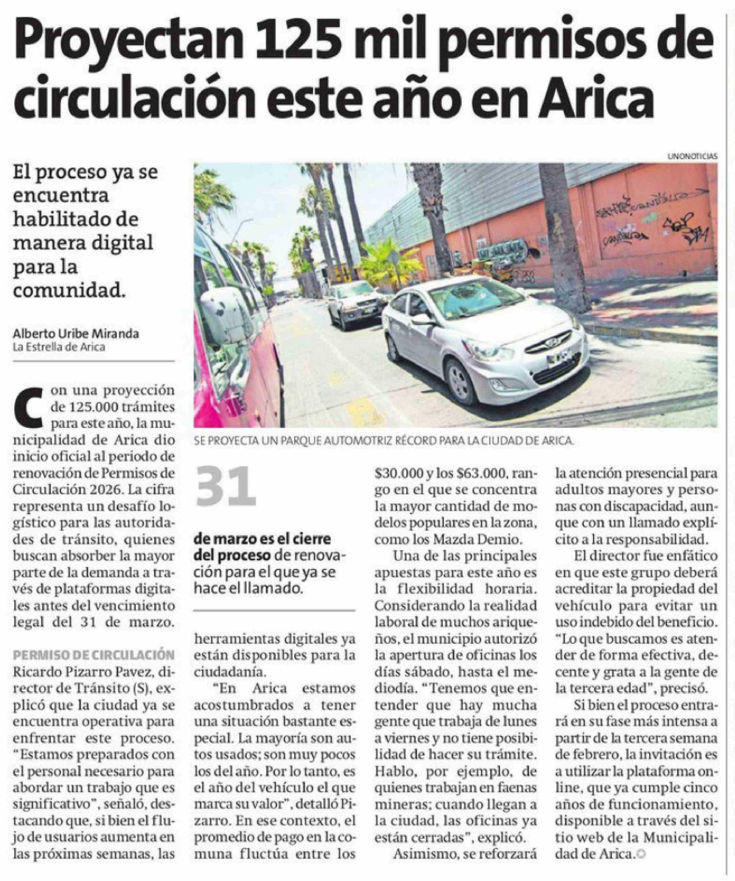 Título: Proyectan 125 mil permisos de circulación este año en Arica