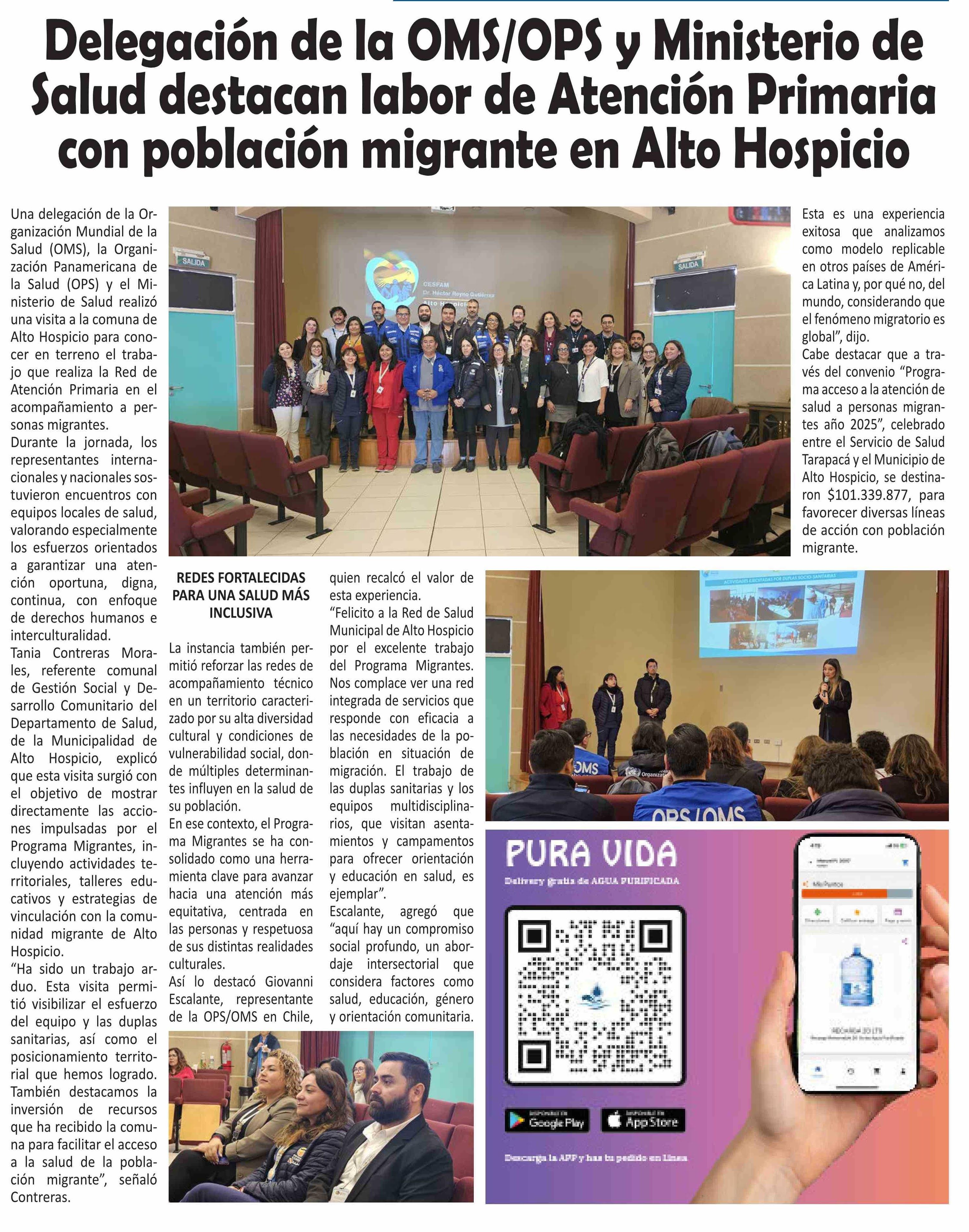 Delegación de la OMS/OPS y Ministerio de Salud destacan labor de Atención Primaria con población migrante en Alto Hospicio 18-06-2025 El Longino |