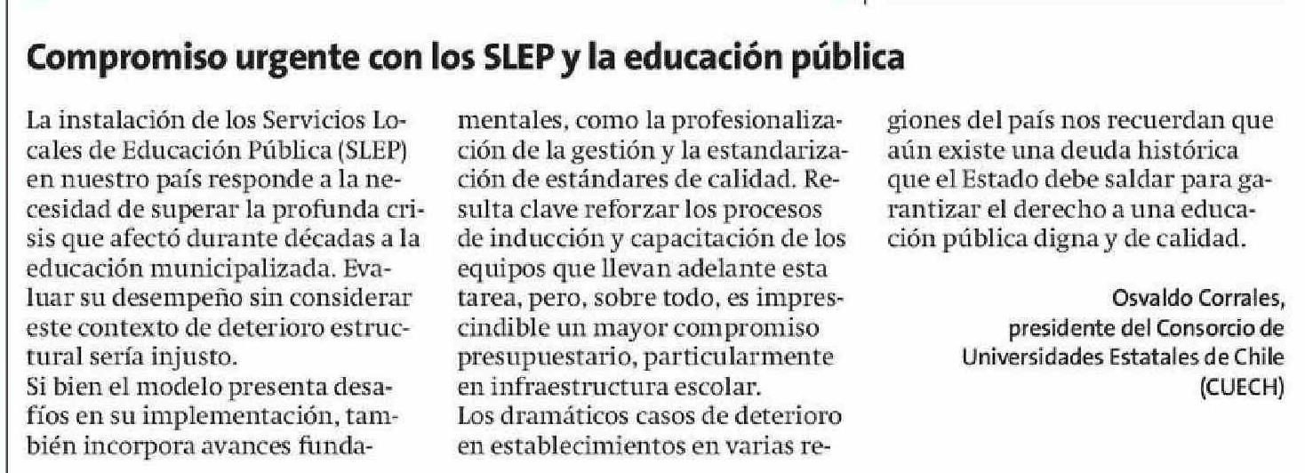 | Título: | Compromiso urgente con los SLEP y la educación pública |