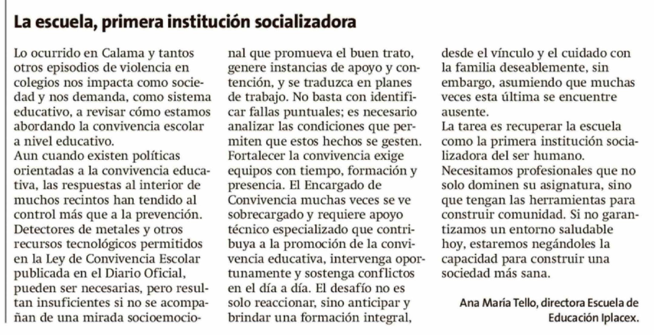 Cartas: La escuela, primera institución socializadora 21-04-2026 La Estrella de Valparaíso |