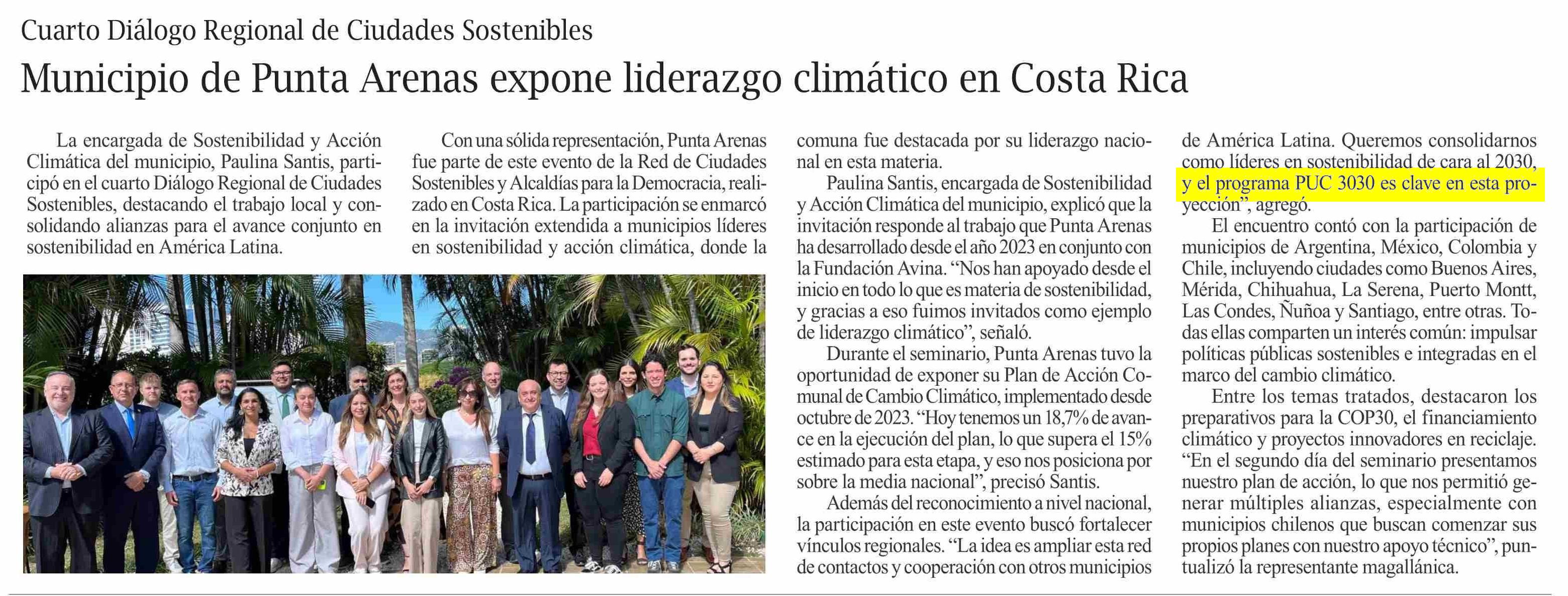 Municipio de Punta Arenas expone liderazgo climático en Costa Rica 30-05-2025 El Pingüino |