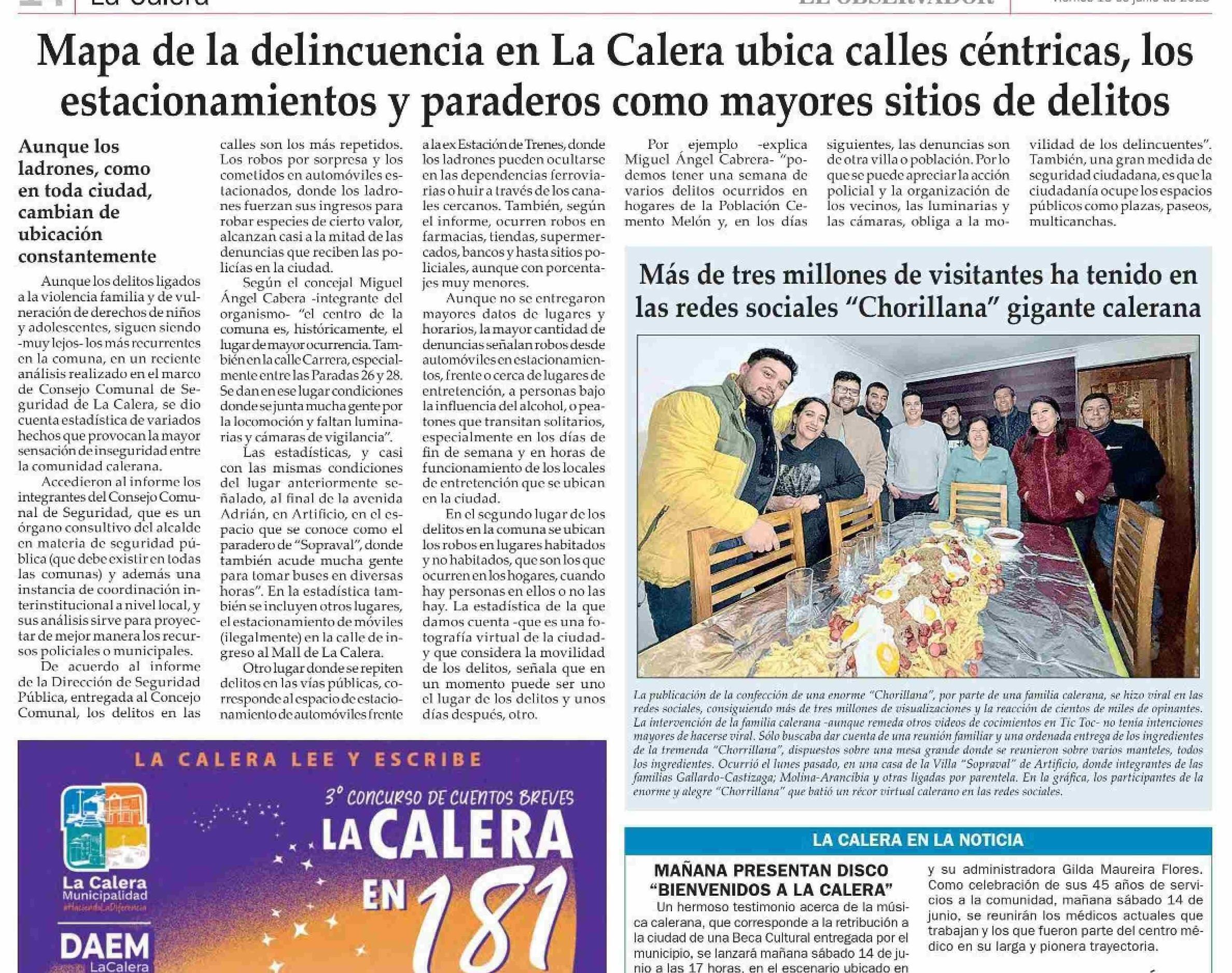 Mapa de la delincuencia en La Calera ubica calles céntricas, los estacionamientos y paraderos como mayores sitios de delitos 13-06-2025 El Observador |