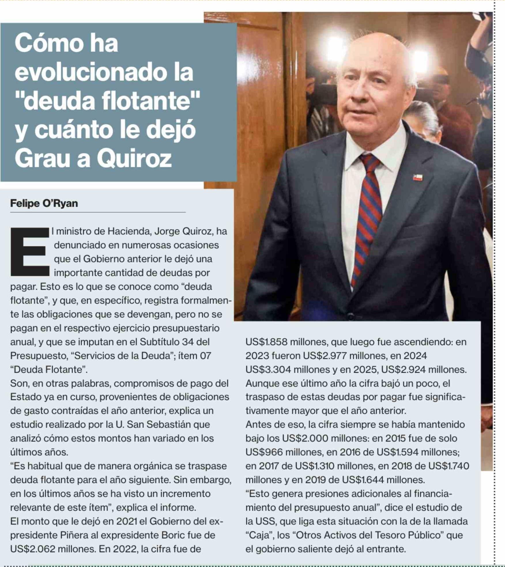 Cómo ha evolucionado la "deuda flotante" y cuánto le dejó Grau a Quiroz 10-04-2026 La Segunda |