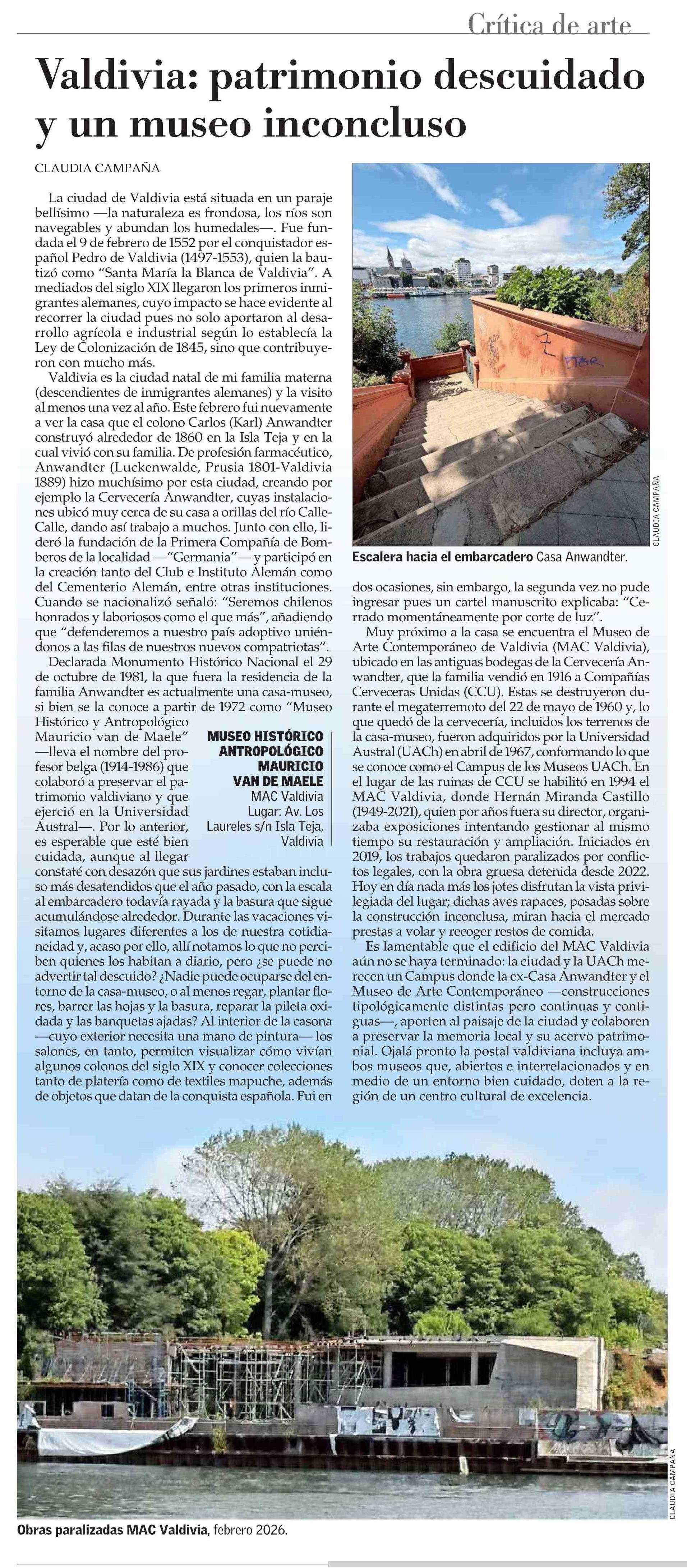 Valdivia: patrimonio descuidado y un museo inconcluso 08-03-2026 El Mercurio |
