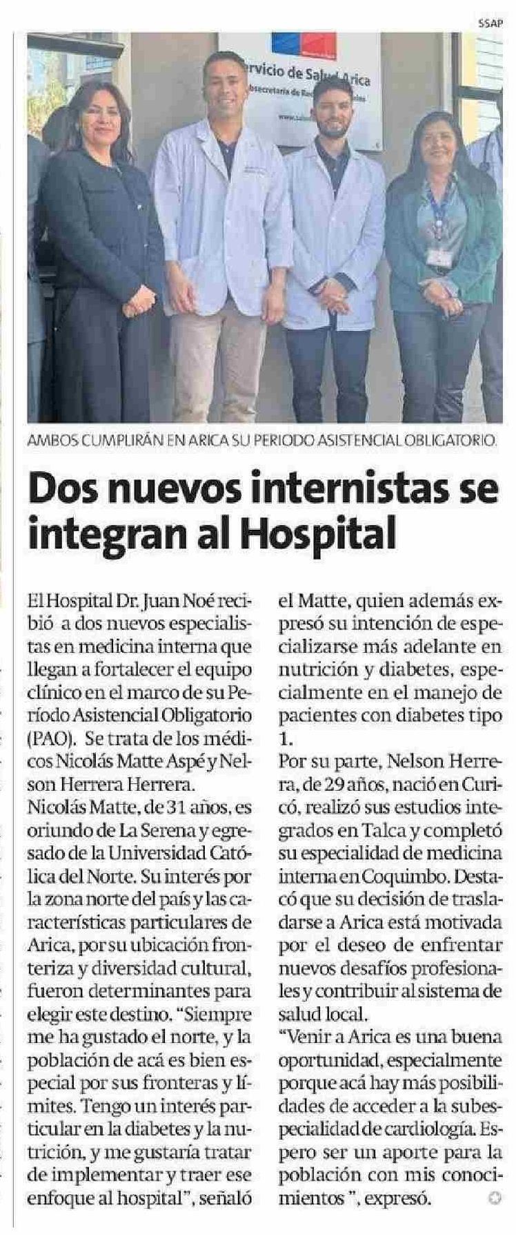 Dos nuevos internistas se integran al Hospital 04-06-2025 La Estrella de Arica |
