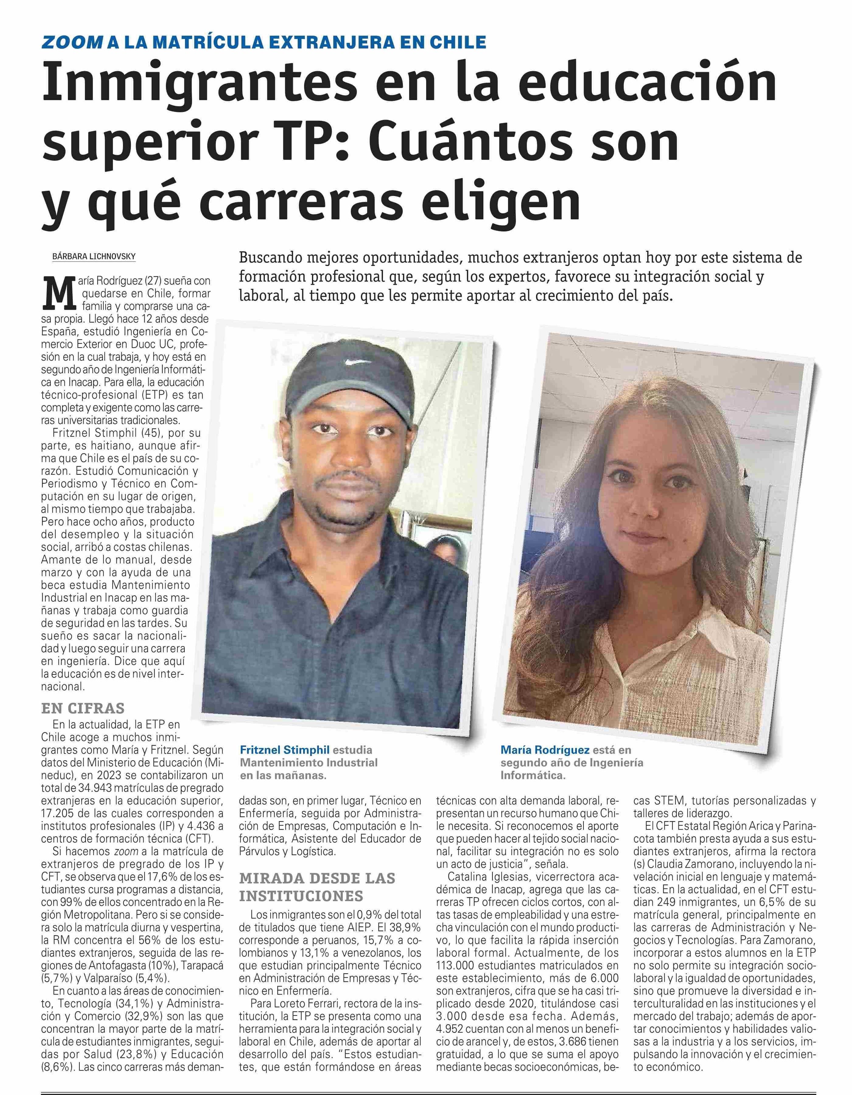 Inmigrantes en la educación superior TP: Cuántos son y qué carreras eligen 24-04-2025 El Mercurio |