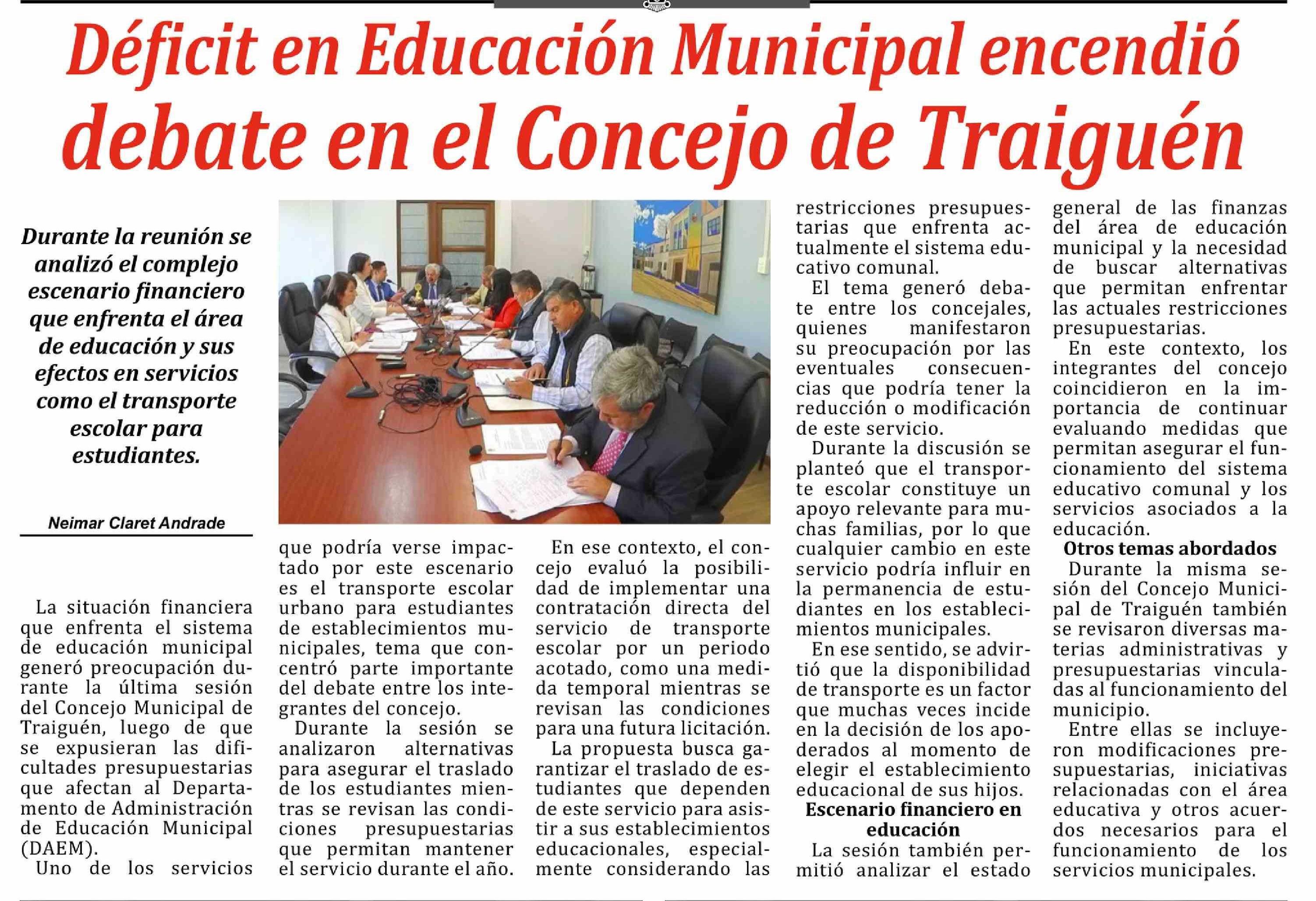| Título: | Déficit en Educación Municipal encendió debate en el Concejo de Traiguén |