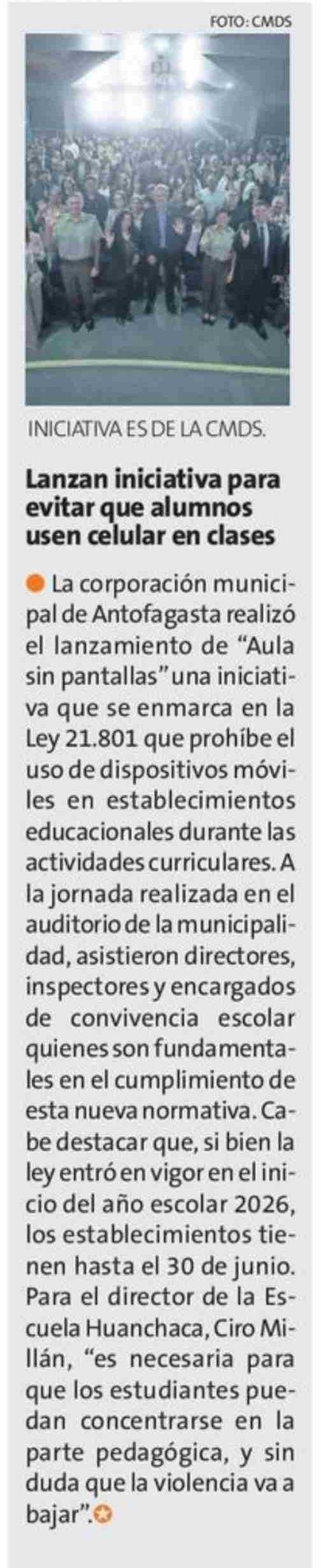 Lanzan iniciativa para evitar que alumnos usen celular en clases 21-04-2026 La Estrella de Antofagasta |