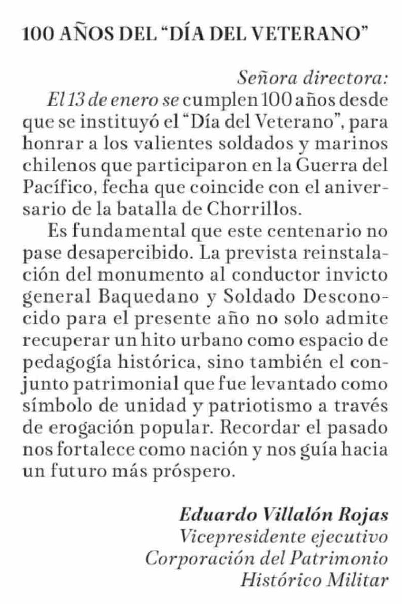 Cartas: 100 AÑOS DEL "DÍA DEL VETERANO"