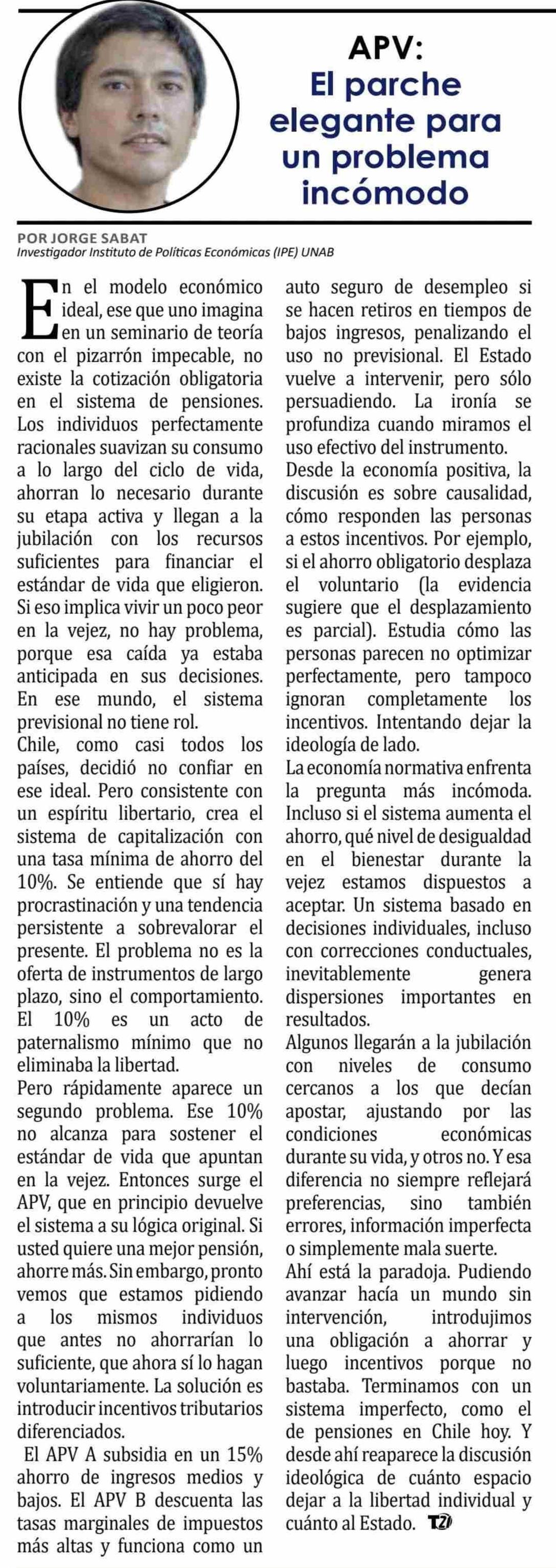 COLUMNAS DE OPINIÓN: APV: El parche elegante para un problema incómodo 11-04-2026 Tiempo 21 |