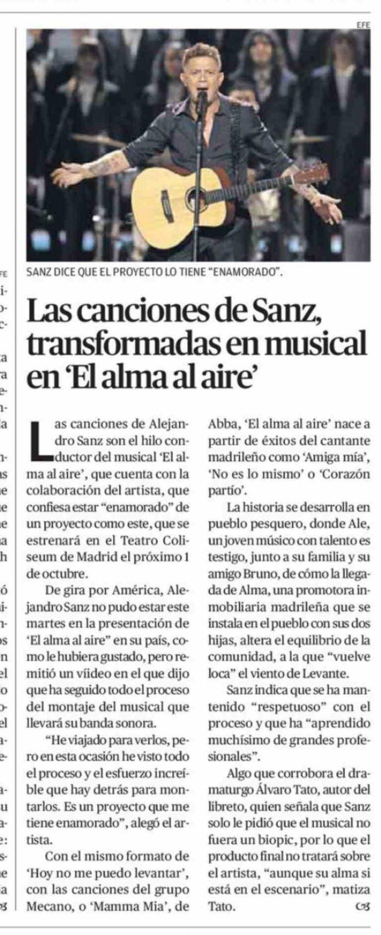 Título: Las canciones de Sanz, transformadas en musical en 'El alma al aire'