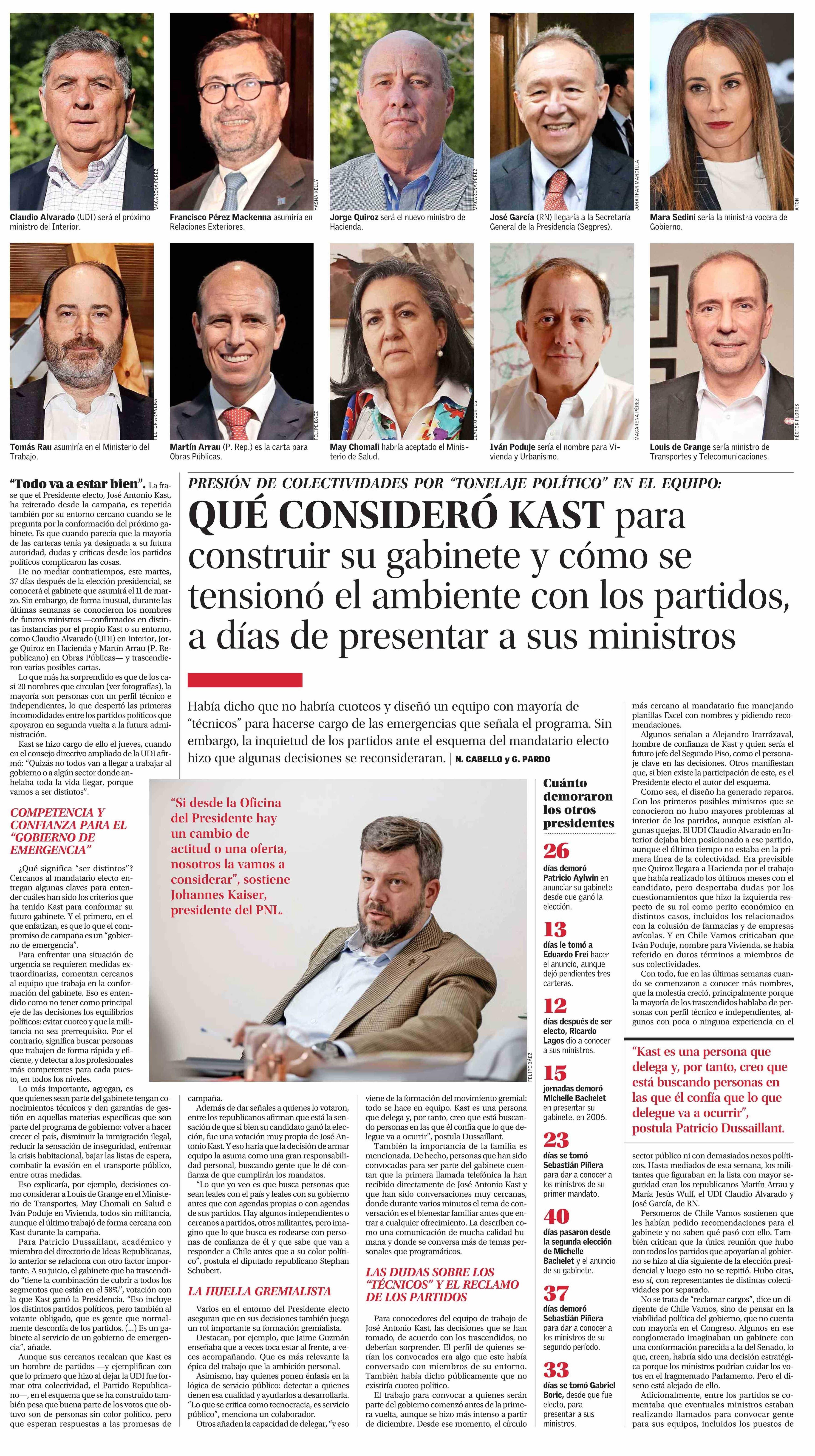 Título: QUÉ CONSIDERÓ KAST para construir su gabinete y cómo se tensionó el ambiente con los partidos, a días de presentar a sus ministros