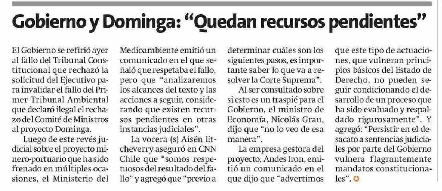 Título: Gobierno y Dominga: "Quedan recursos pendientes"