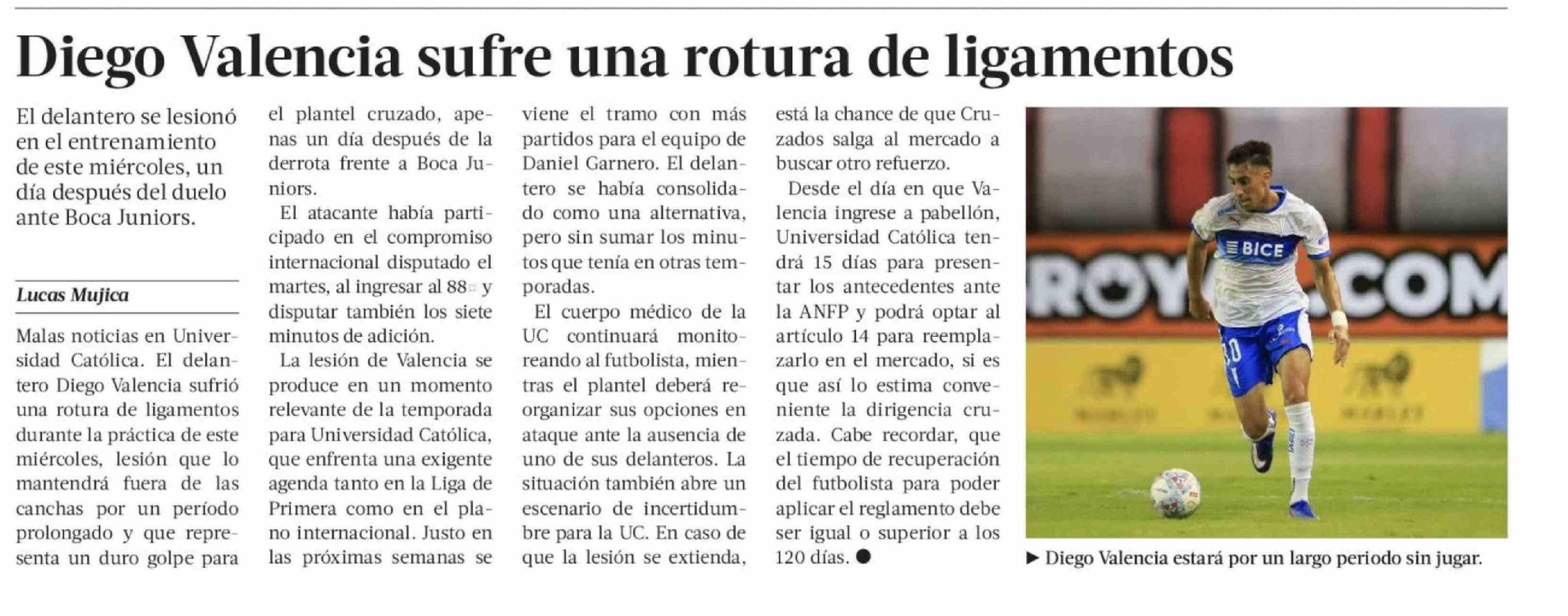 Título: Diego Valencia sufre una rotura de ligamentos
