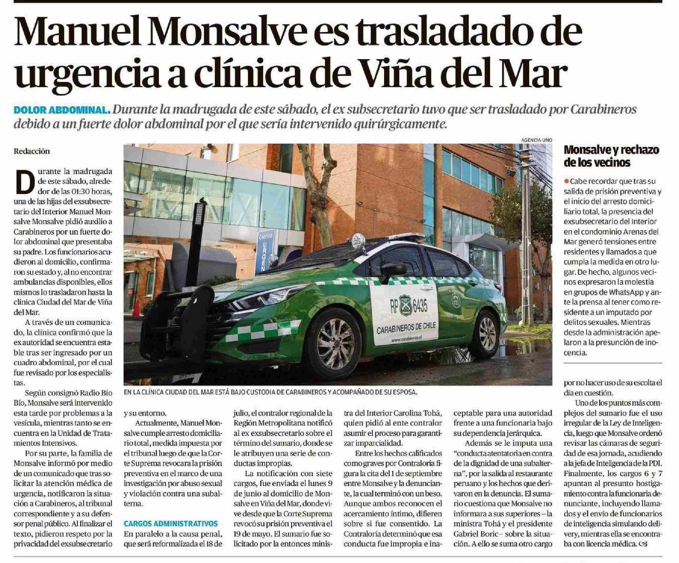 Manuel Monsalve es trasladado de urgencia a clínica de Viña del Mar 15-06-2025 Crónica de Chillán |