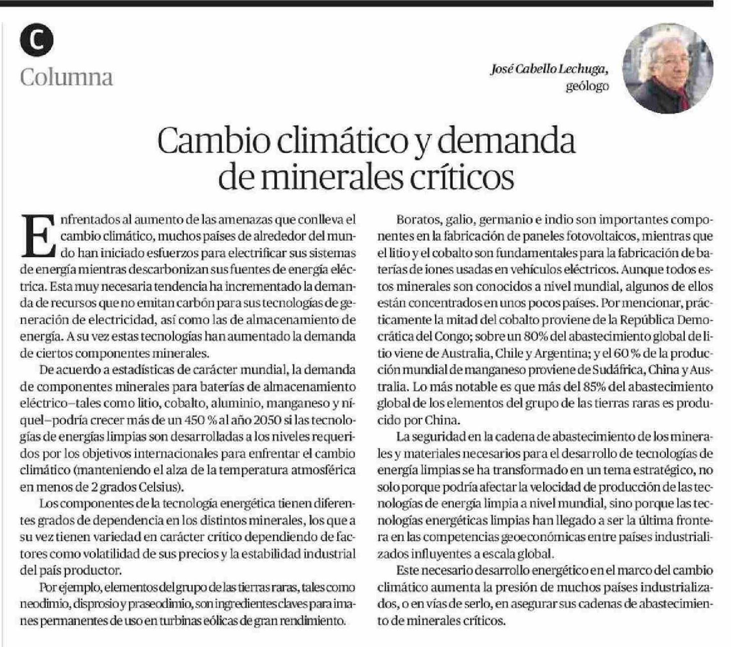 | Título: | Columnas de Opinión: Cambio climático y demanda de minerales críticos |