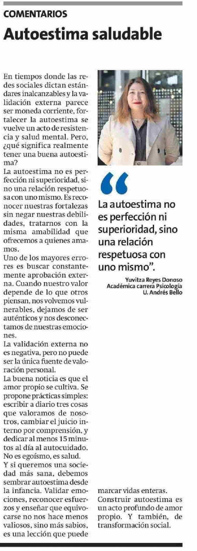 COLUMNAS DE OPINIÓN: Autoestima saludable 20-06-2025 La Estrella de Arica |
