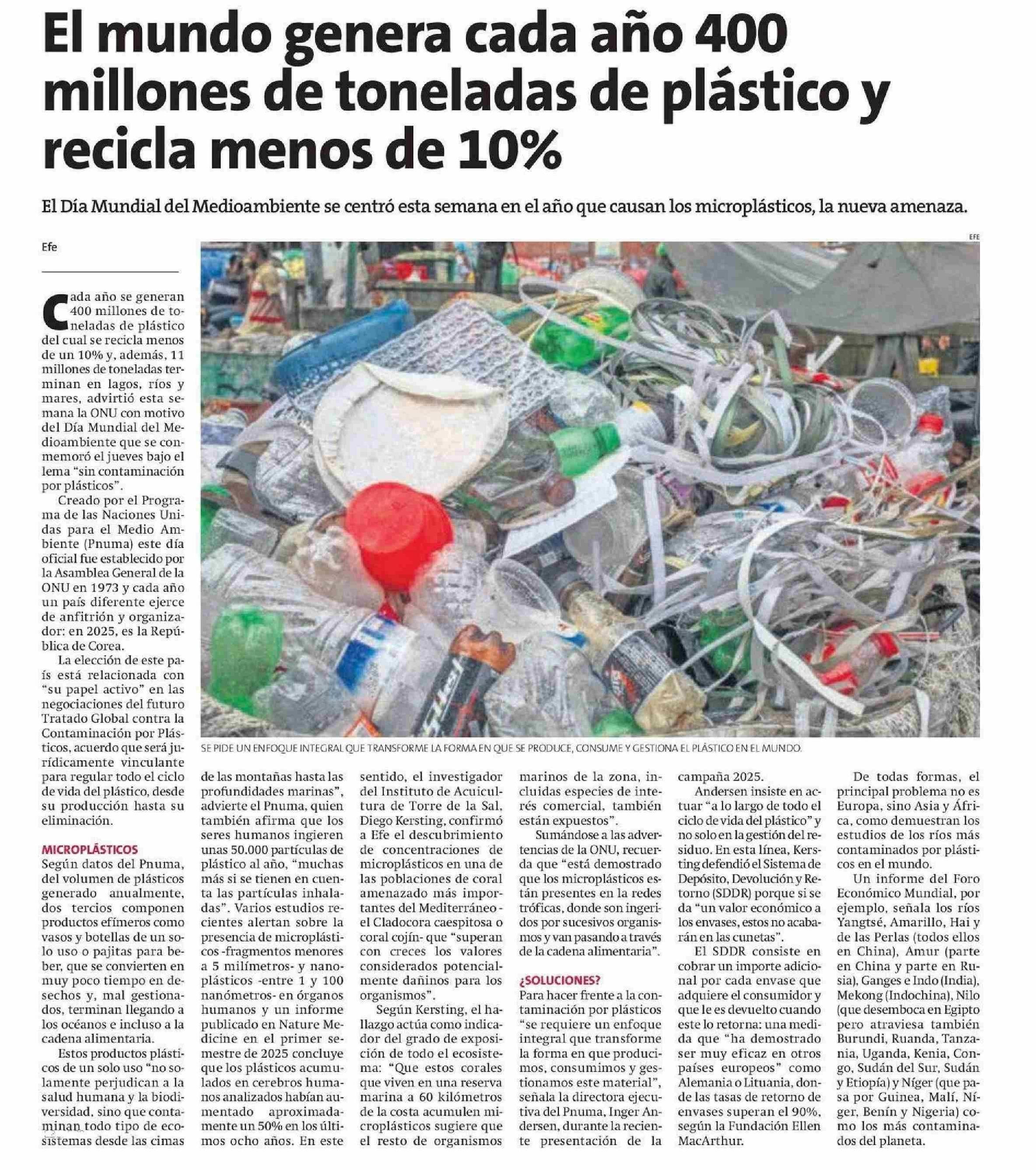 El mundo genera cada año 400 millones de toneladas de plástico y recicla menos de 10% 08-06-2025 La Estrella de Arica |
